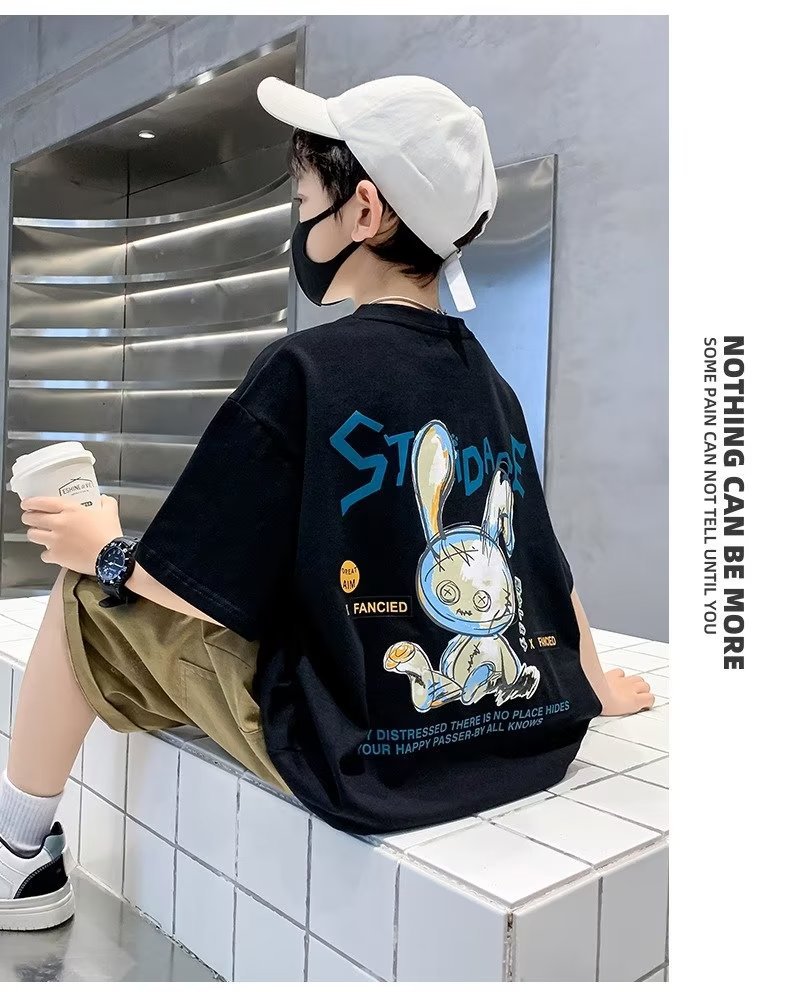 童装男童港风涂鸦兔子短袖t恤夏季新款卡通半袖儿童夏装上衣