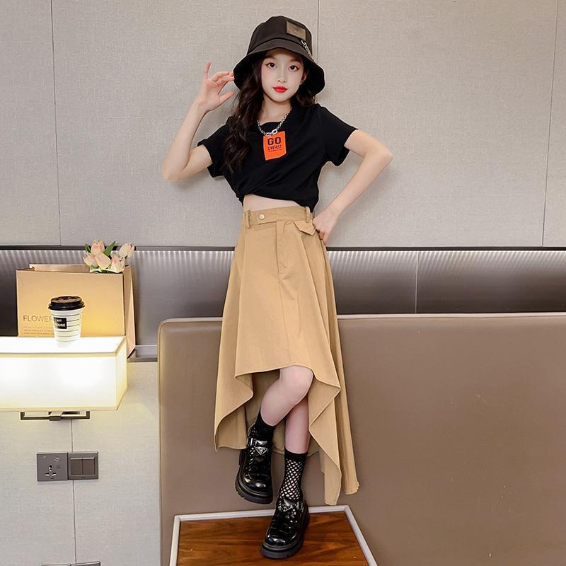 女童夏季套装新款洋气时髦短袖儿童装网红中大童半身裙两件套