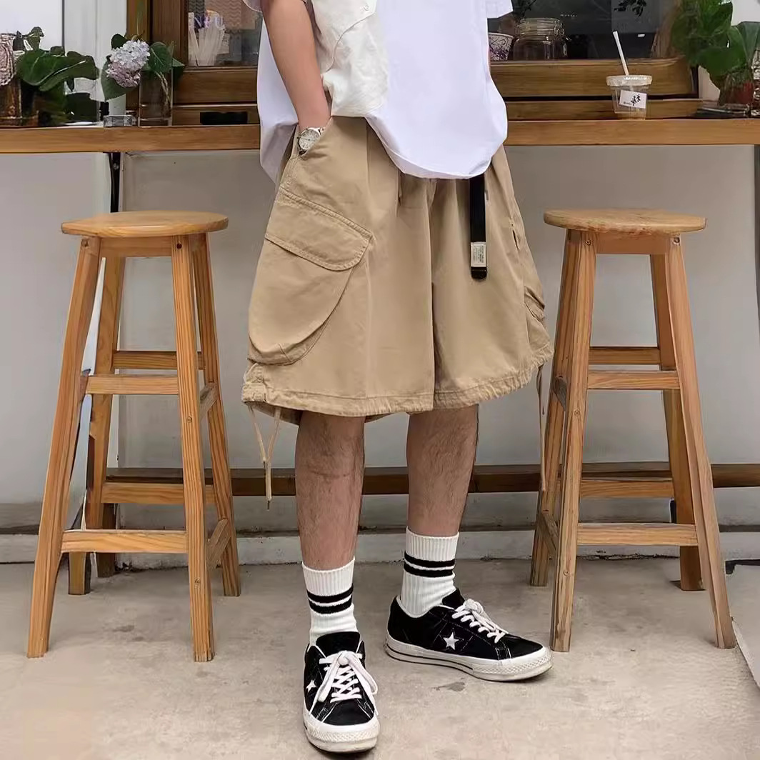 日系夏季阔腿工装短裤男ins潮牌宽松五分大裤衩百搭直筒过膝中裤