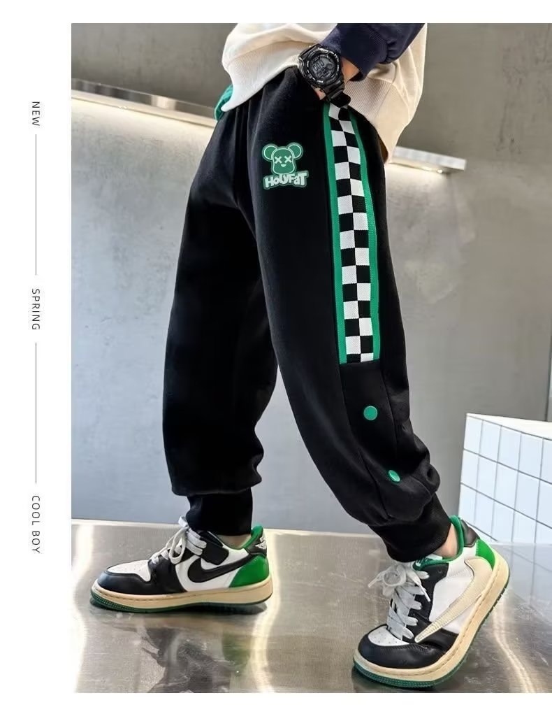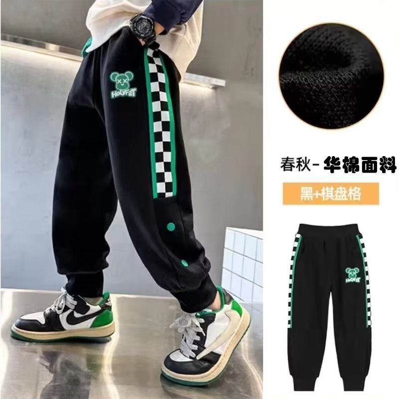 春秋新款宽松华夫格华棉运动休闲裤中大童秋冬款百搭炸街卫裤