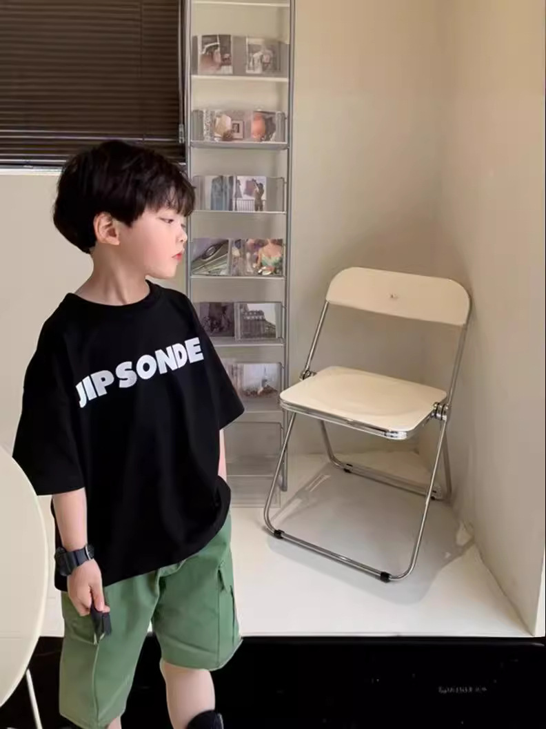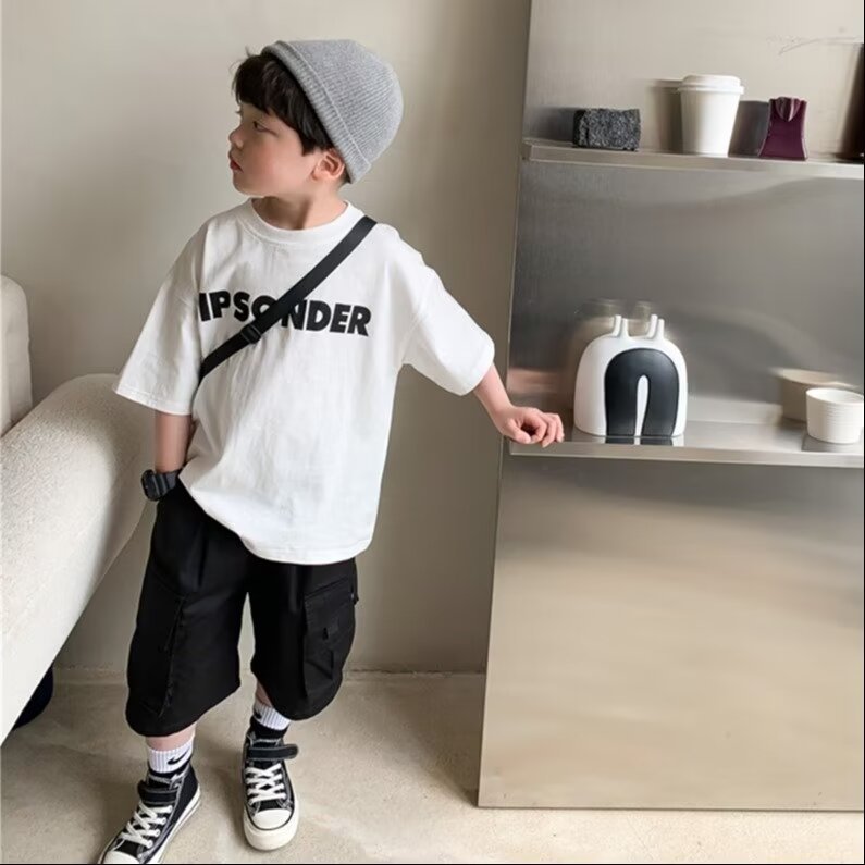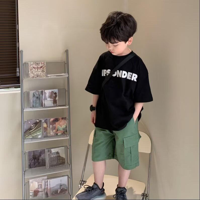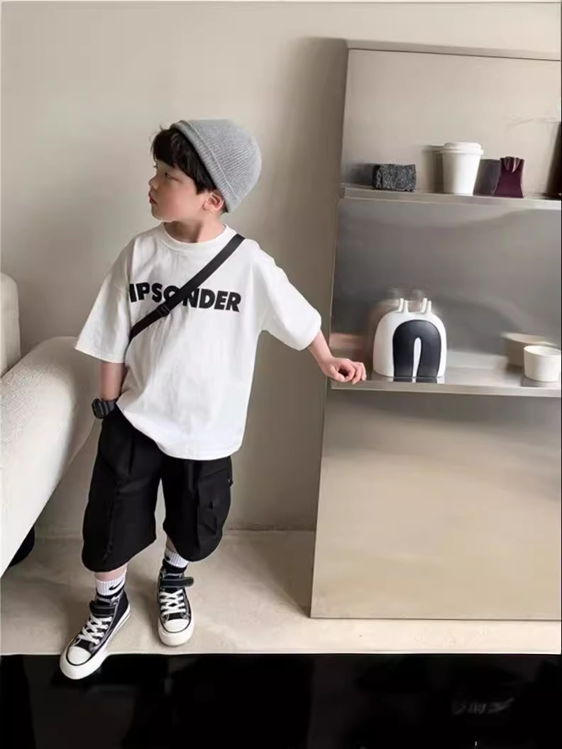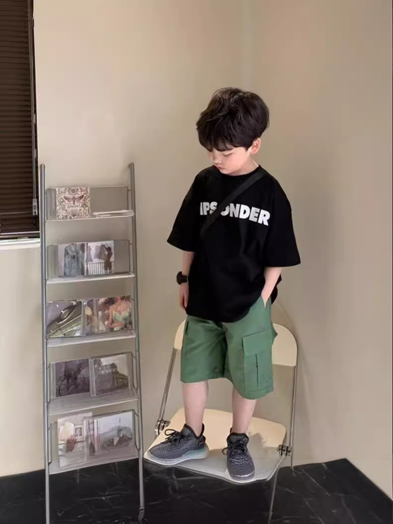 童装男童短袖t恤款儿童印花字母帅气中大童潮牌半袖上衣跨境