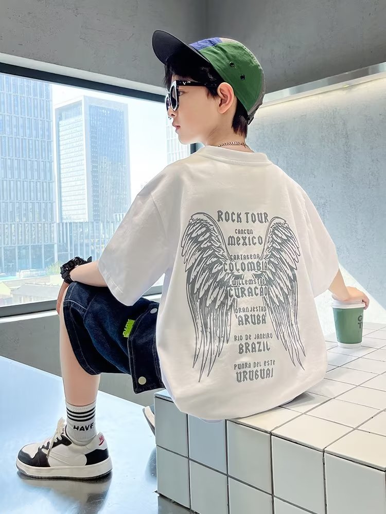 男童印花短袖白t恤儿童夏装洋气上衣半袖潮童装男孩帅气上衣