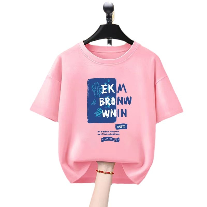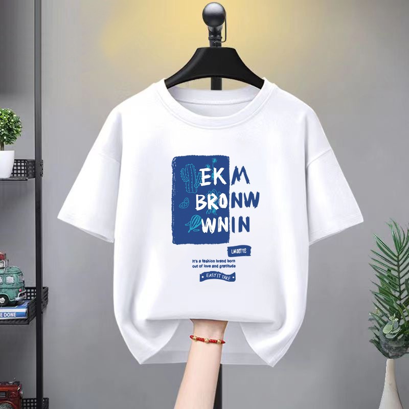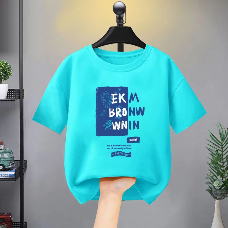 童装夏季短袖T恤新款夏季男女童字母印花体恤夏款日系休闲棉T