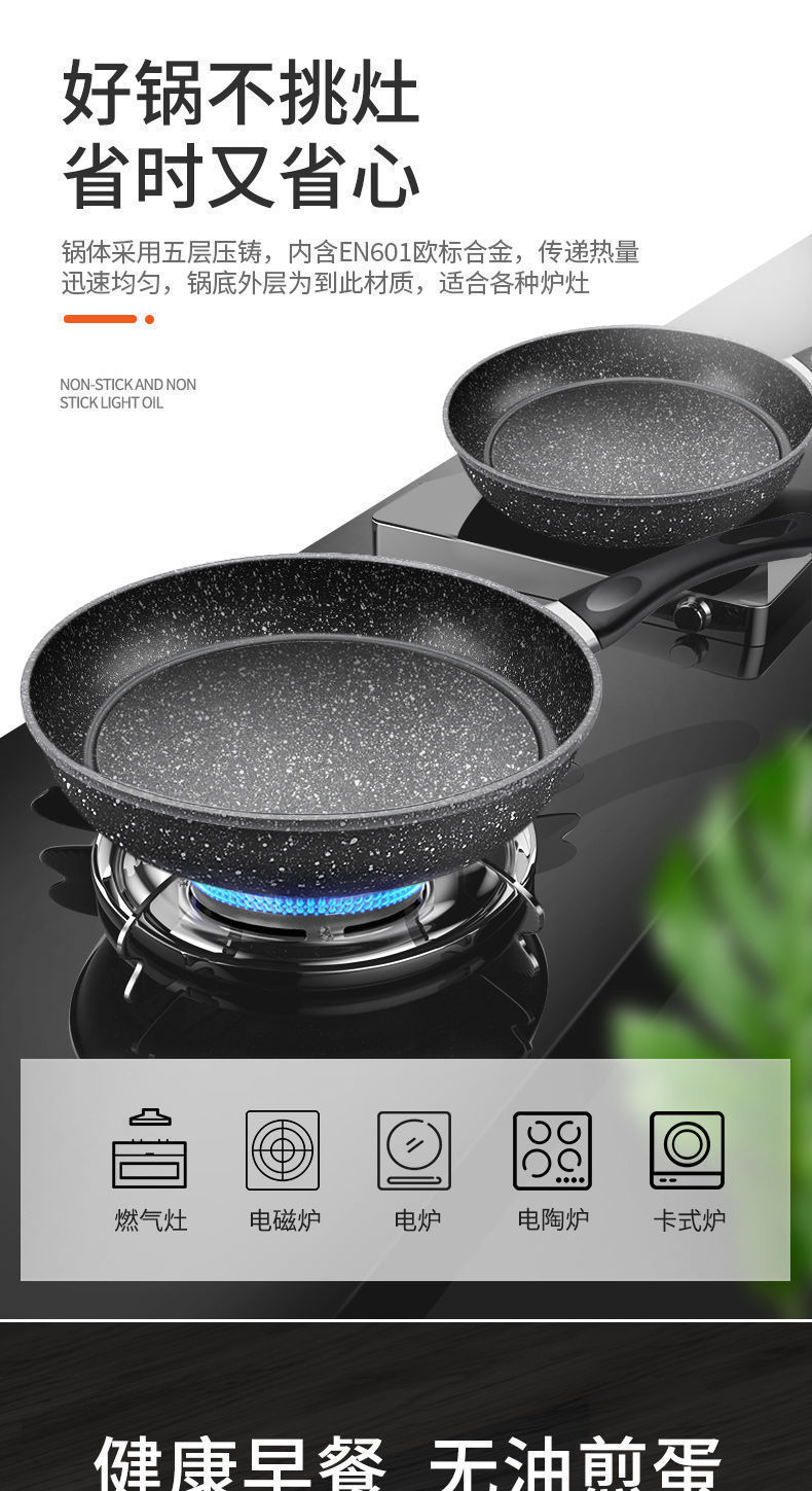 麦饭石煎锅家用平底锅轻油烟煎饼锅牛排煎锅通用炉灶不粘锅