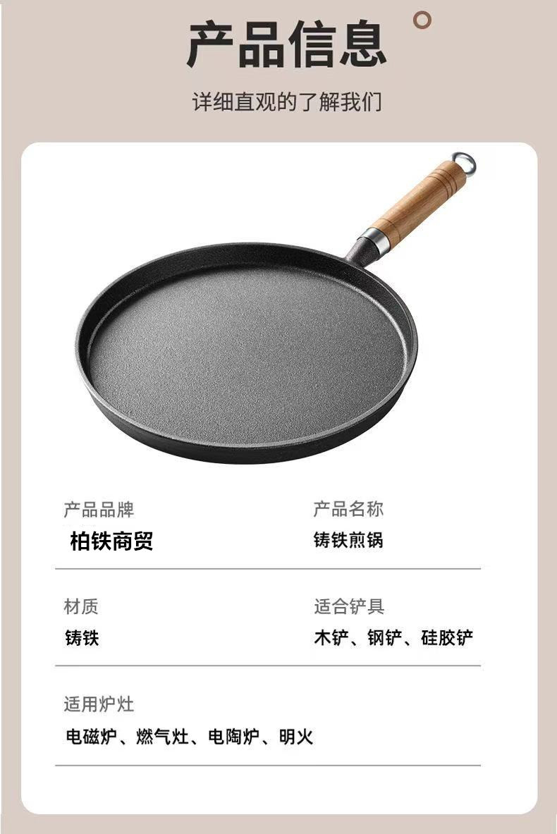 加厚铸铁平底锅烙饼锅家用无涂层不粘锅摊煎饼果子手抓饼煎饼