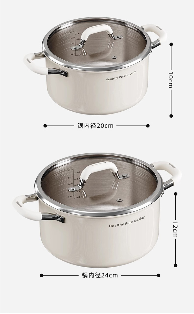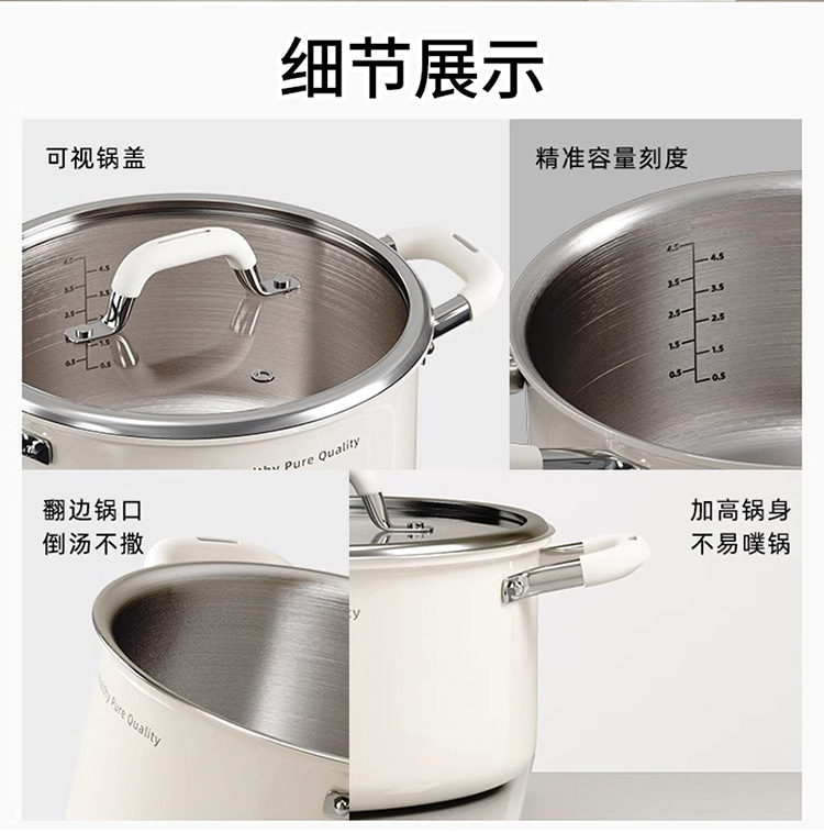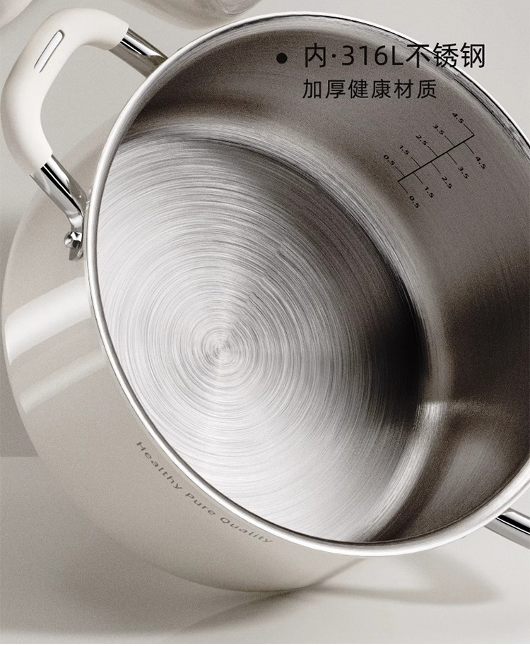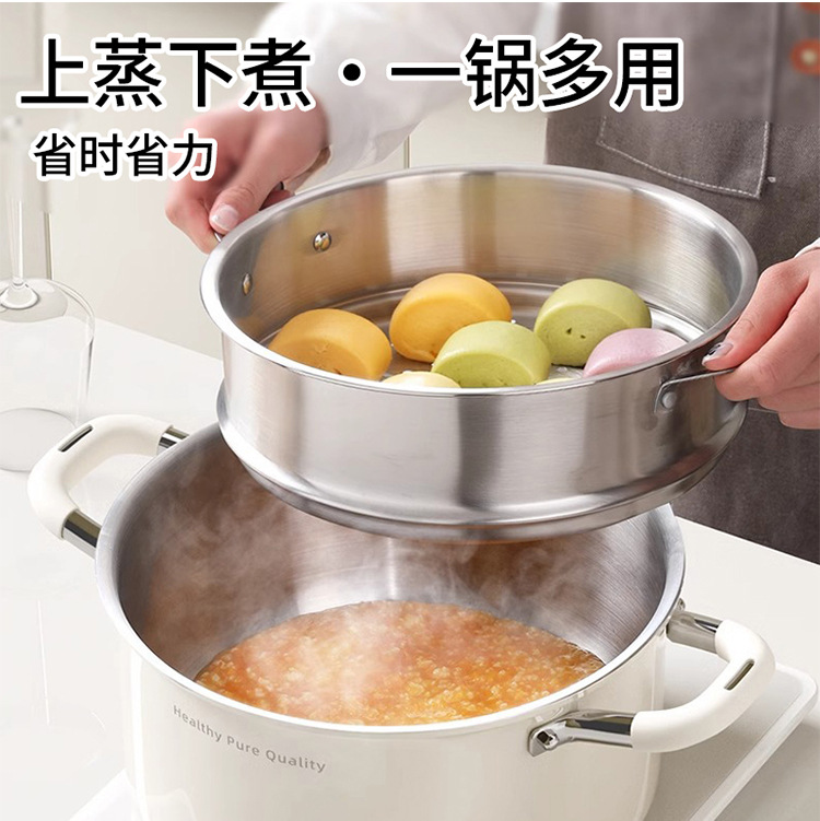 316L不锈钢汤锅家用加厚无涂层煮粥锅蒸煮一体陶瓷锅电磁炉高汤锅