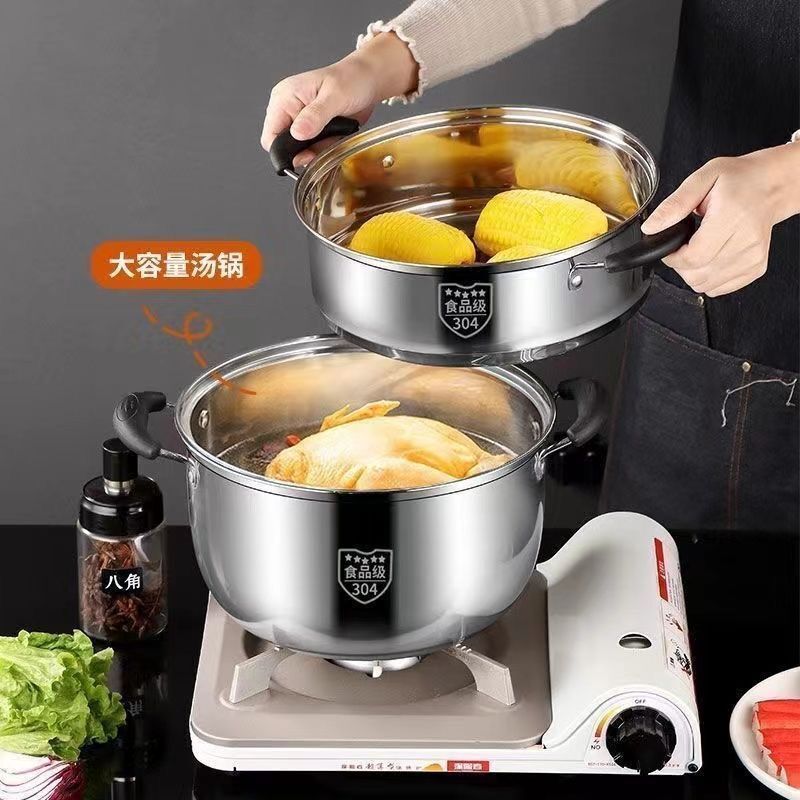 高汤锅不锈钢家用加厚大容量煲汤熬粥蒸煮炖锅电磁炉煮锅
