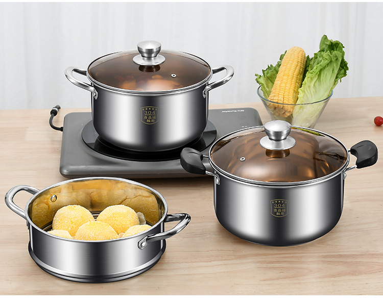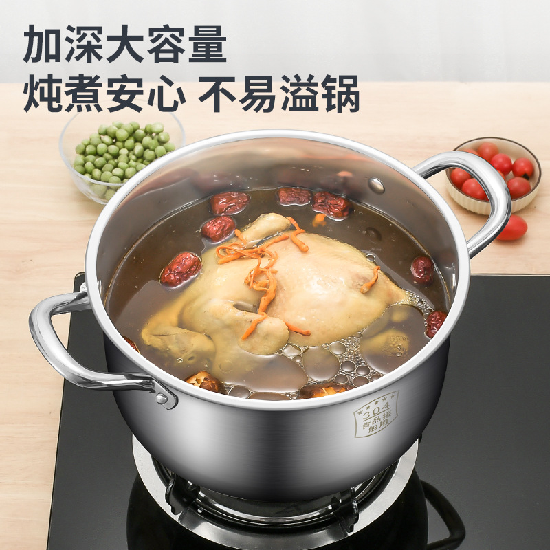 汤锅304不锈钢加厚家用蒸炖肉煮粥煮面燃气电磁炉双耳蒸煮锅