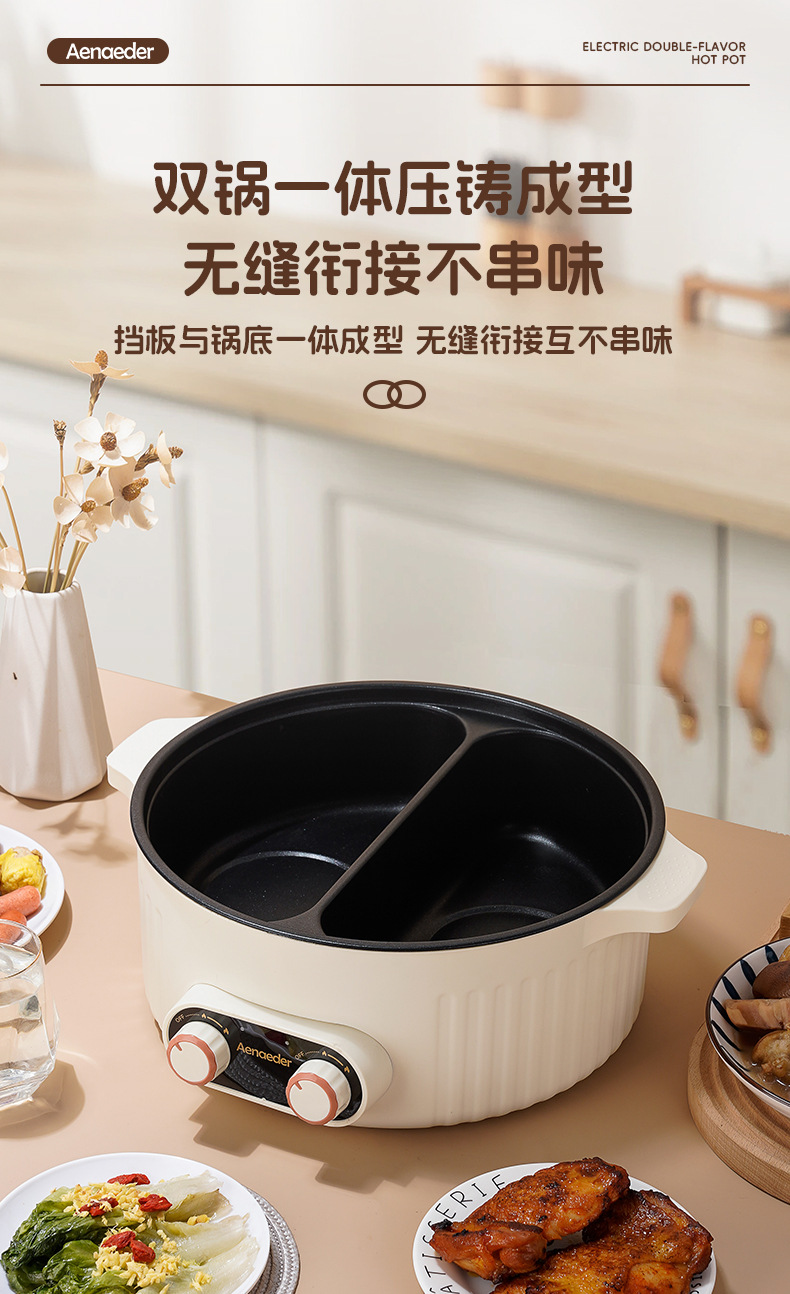 鸳鸯电火锅家用多功能电热锅7L大容量一体宿舍不粘电煮锅
