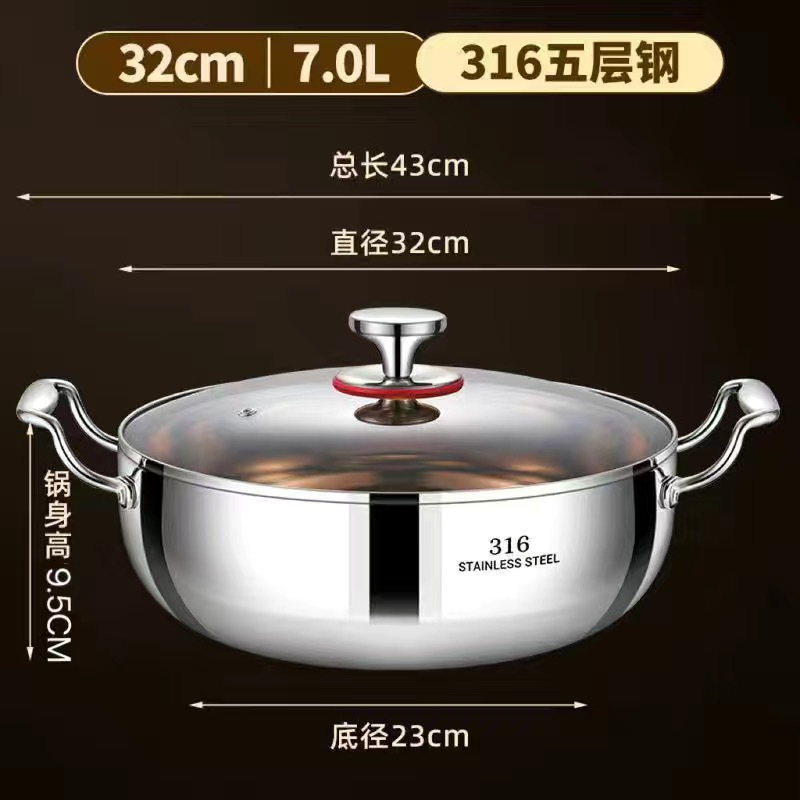 特厚316不锈钢火锅电磁炉燃煤气灶蒸炖加厚带盖家用双耳汤锅