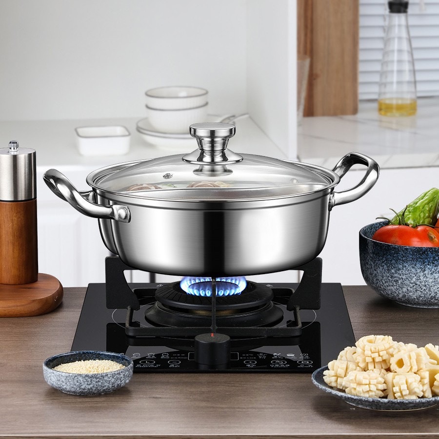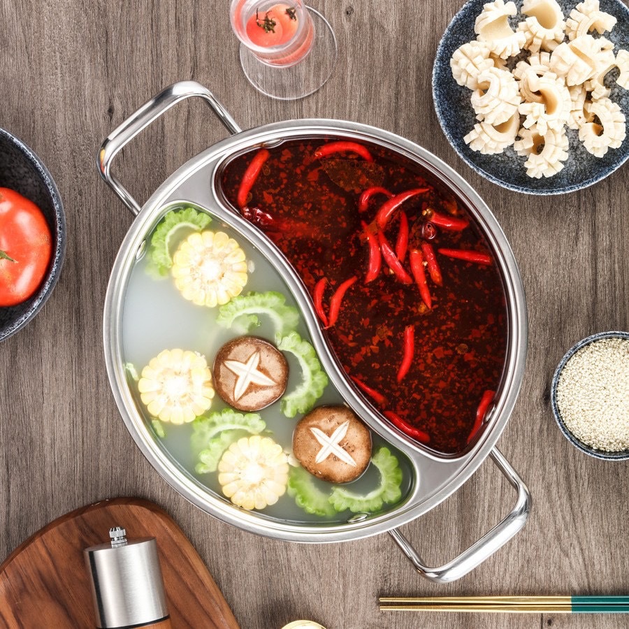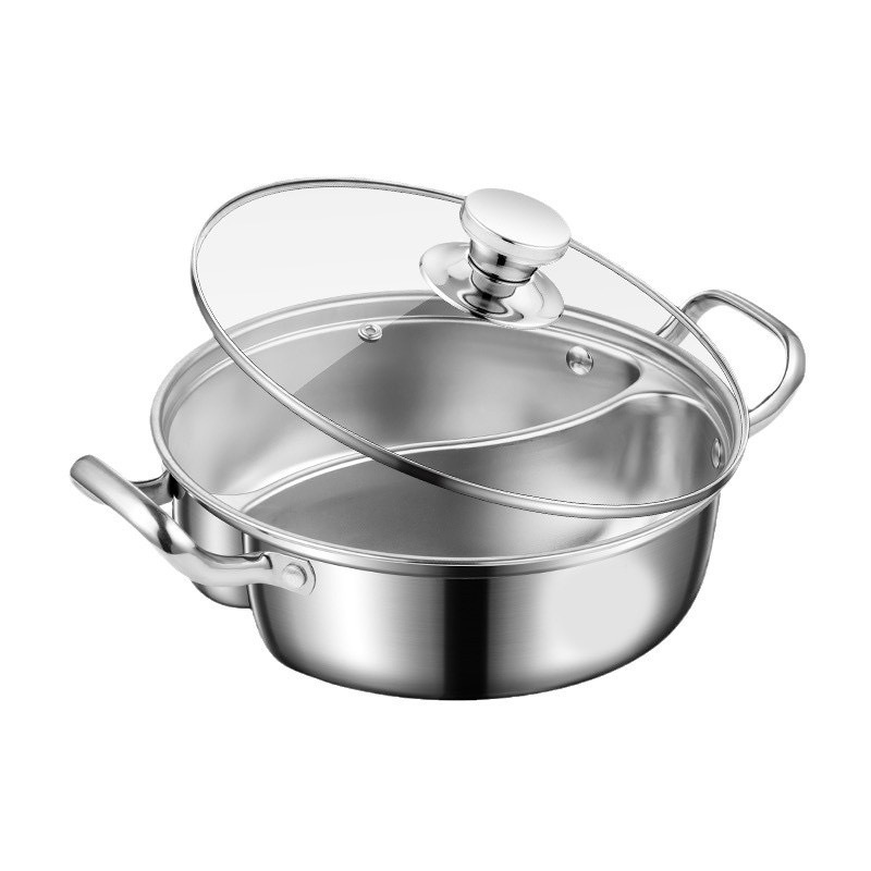 不锈钢鸳鸯锅一体成型商用分格火锅加厚大容量涮锅家用双耳汤锅