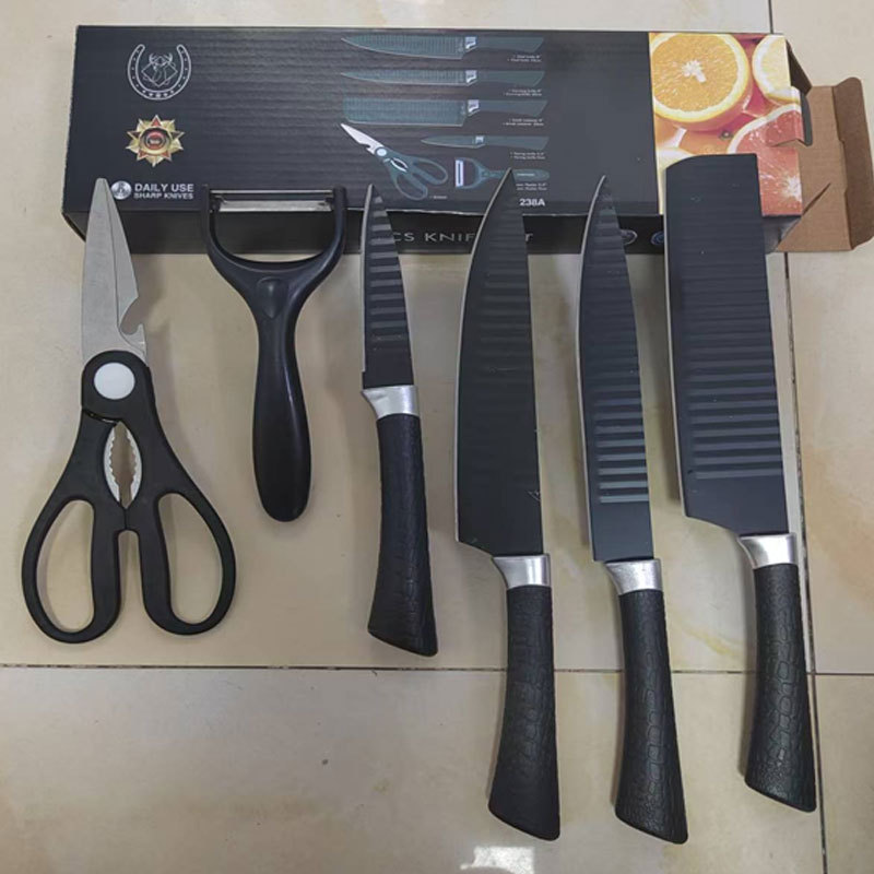 厨房刀具套装礼品套刀不粘扎纹菜刀波浪纹六件套刀具