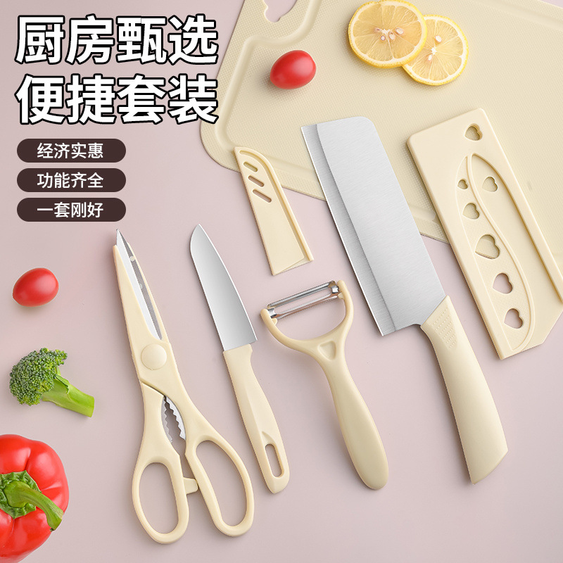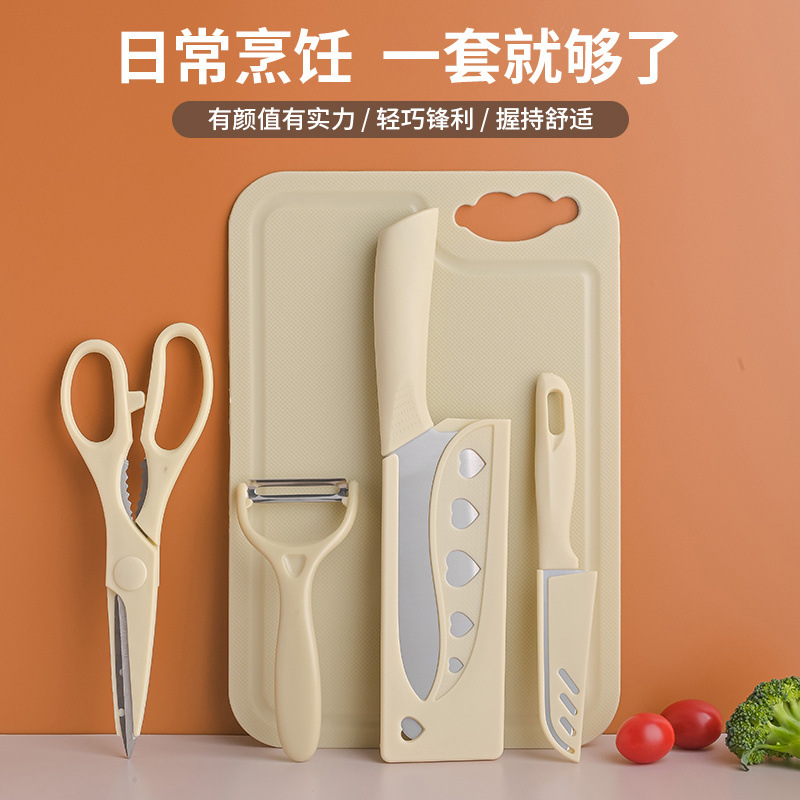 60°以上-120mm15.5cm粉【推荐四件】菜刀+菜板+果刀+削刀