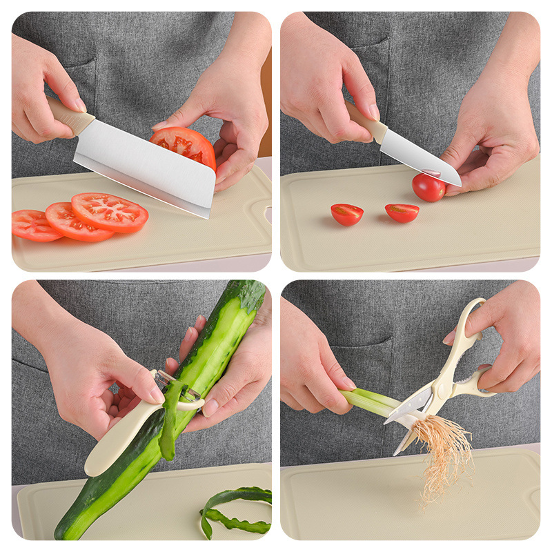 60°以上-120mm15.5cm白【推荐四件】菜刀+菜板+果刀+削刀