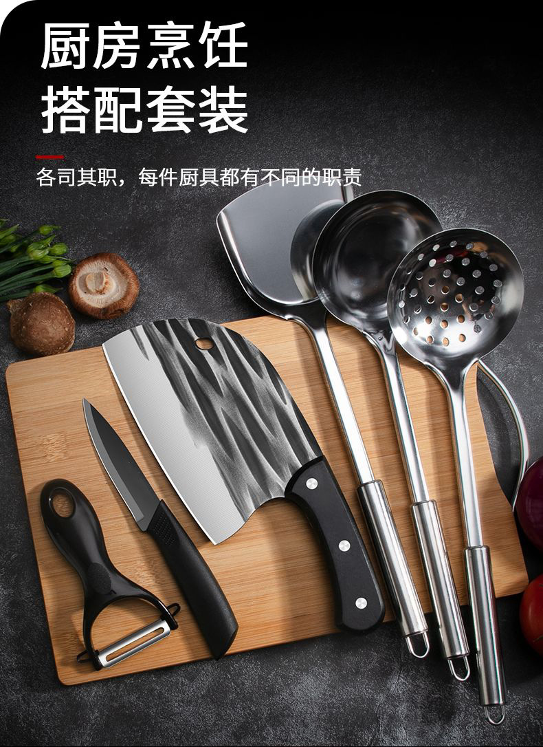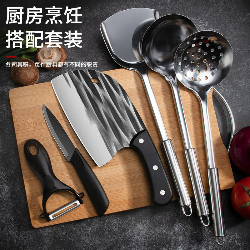 【7件】刀具三件+锅铲+锅勺+漏勺