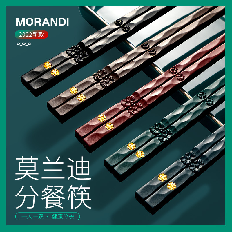 轻奢合金筷子家用高档一人一筷抗菌防霉防滑高颜值家庭快筷子