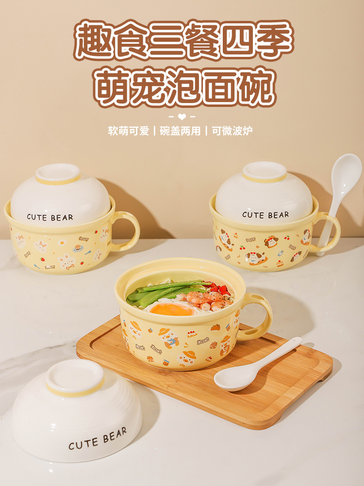 泡面碗带盖家用陶瓷方便面碗宿舍用学生泡面杯