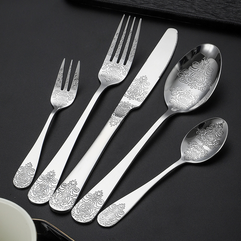 浮雕麦穗410不锈钢刀叉勺五件套酒牛排刀叉西餐具套装