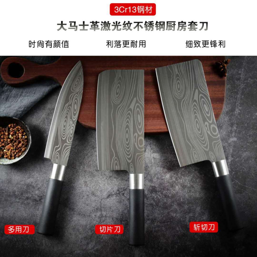 大马士革菜刀家用套装厨师刀不锈钢切片刀砍骨刀厨房刀具套装