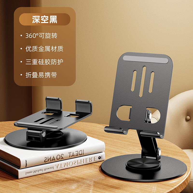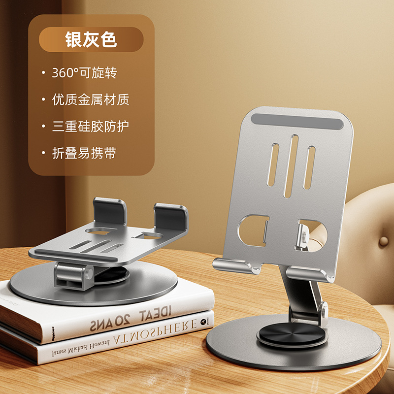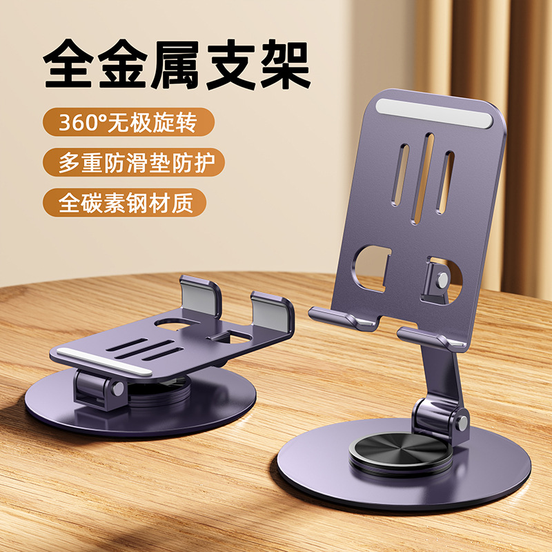 全金属手机支架桌面懒人直播平板便携支撑架圆盘旋转铝合金创意