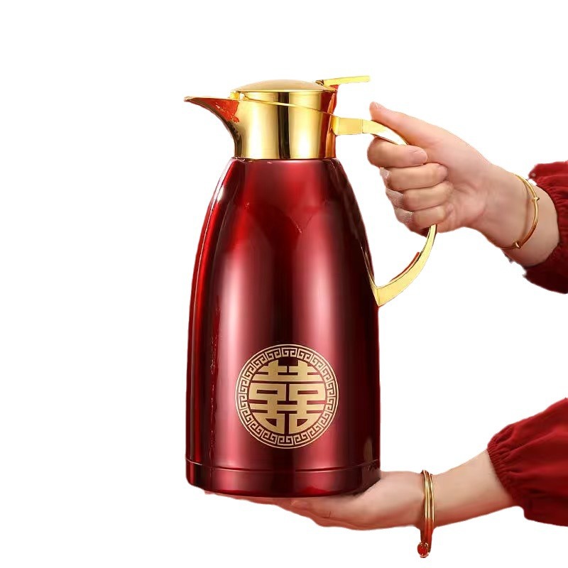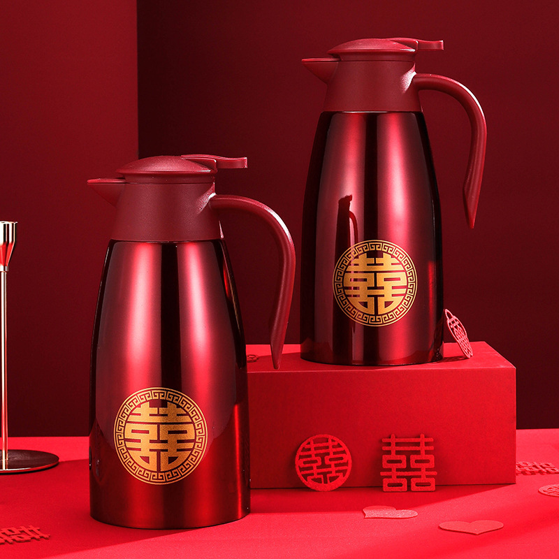 保温水壶结婚陪嫁一对304不锈钢暖壶热水壶带杯子红色喜庆热水瓶