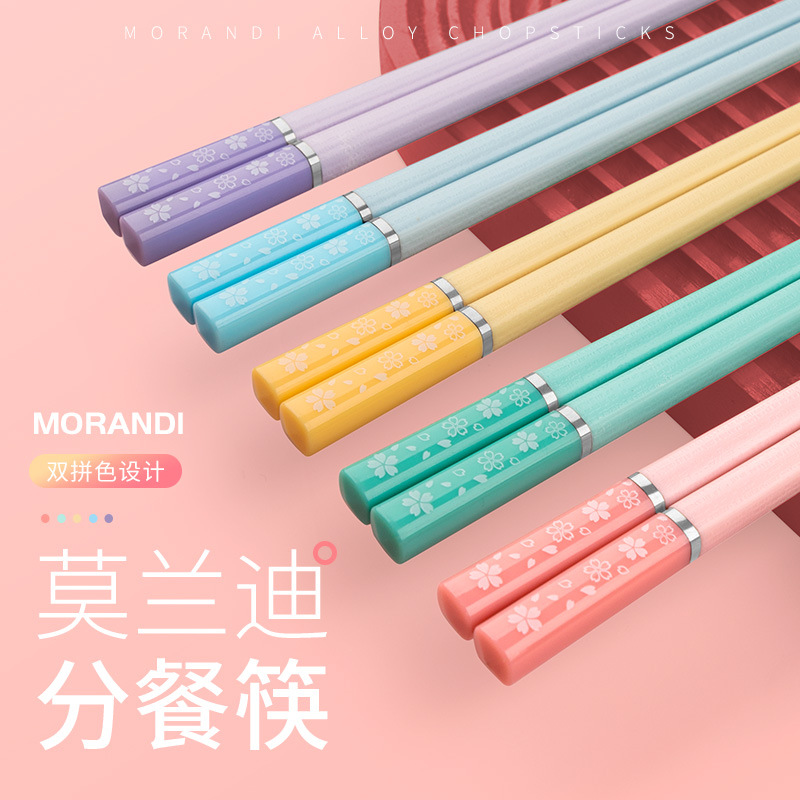日式樱花合金筷子家用一人一筷抗菌防霉防滑高颜值莫兰迪彩色快子