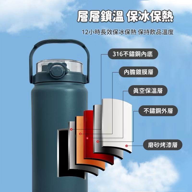 双饮提手保温杯双饮水杯 大容量保温壶运动316不锈钢食品级