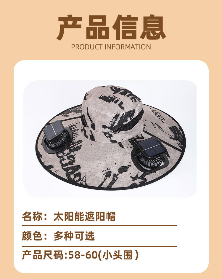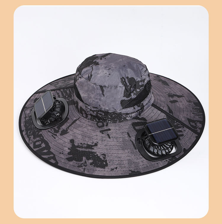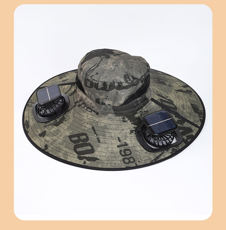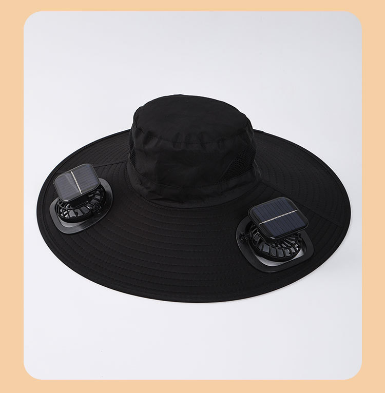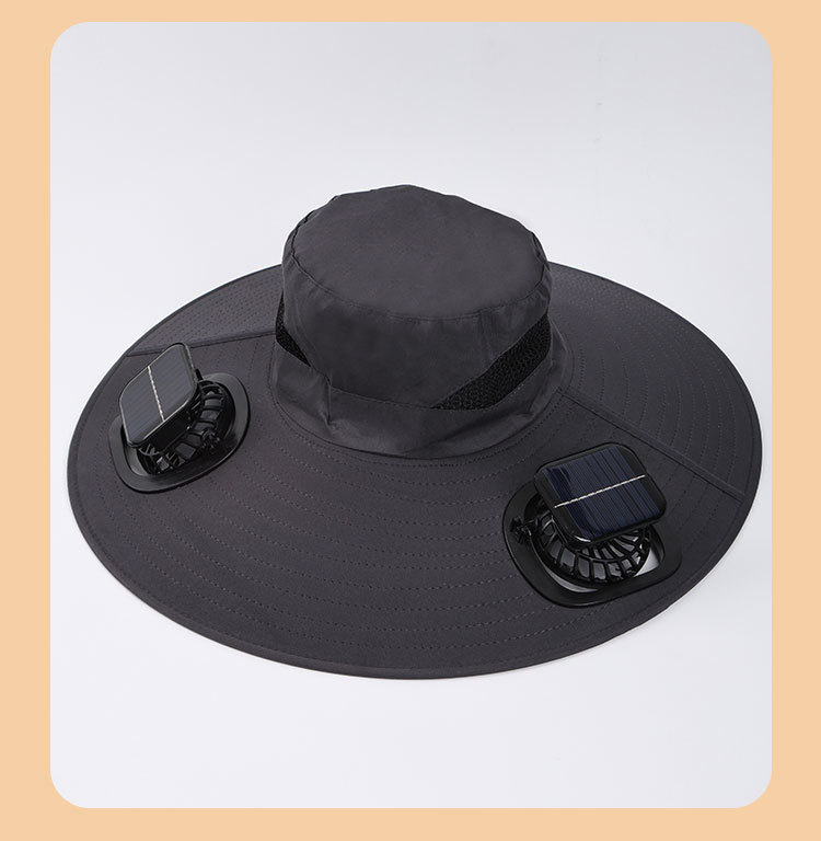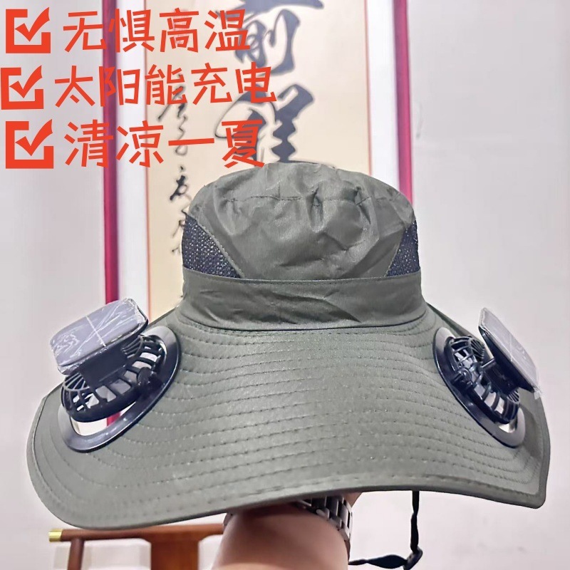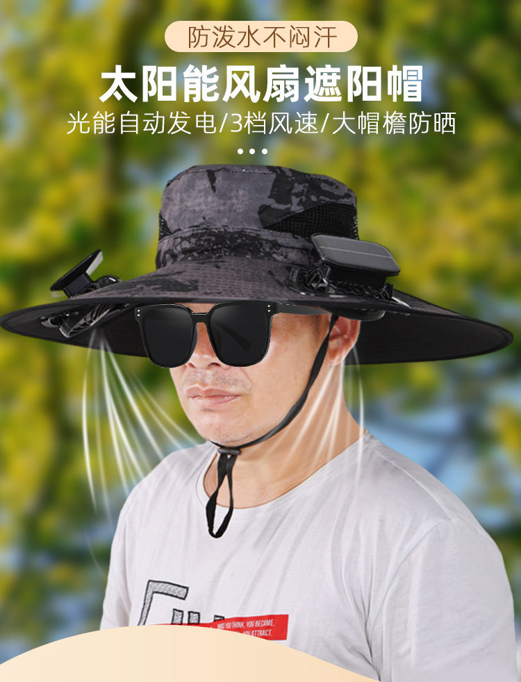 太阳能风扇帽成人夏季户外登山钓鱼防紫外线遮阳超大檐防晒渔夫帽