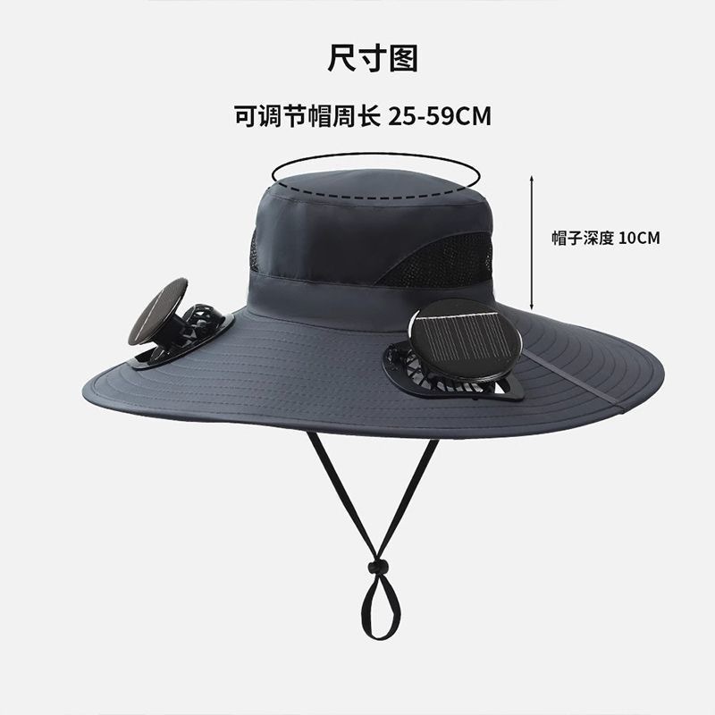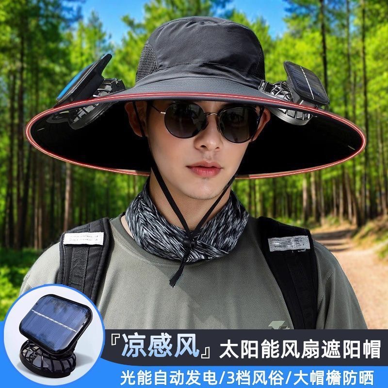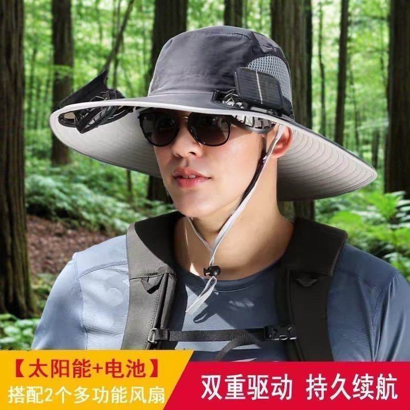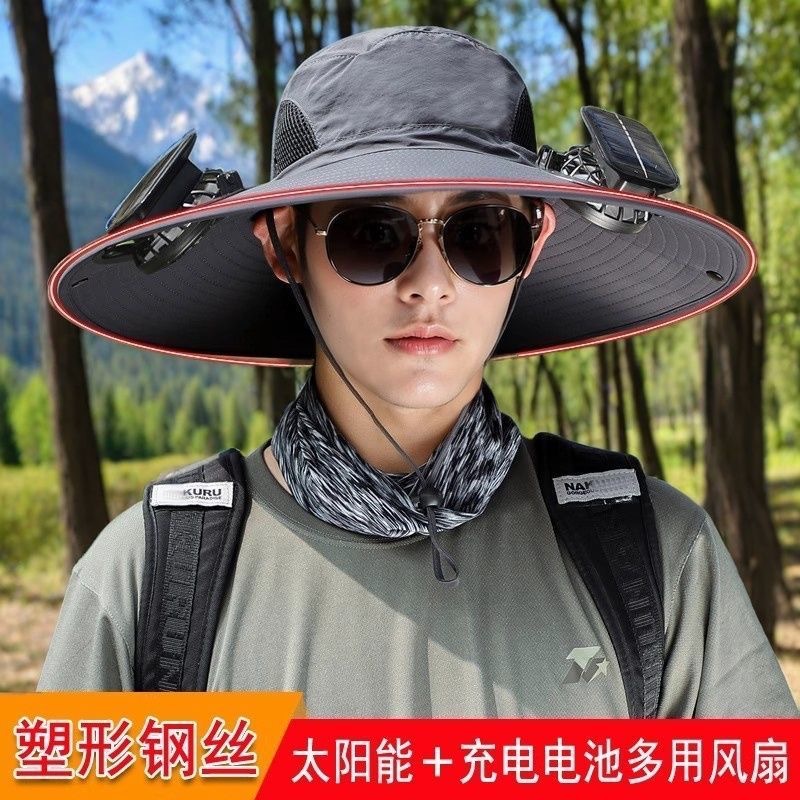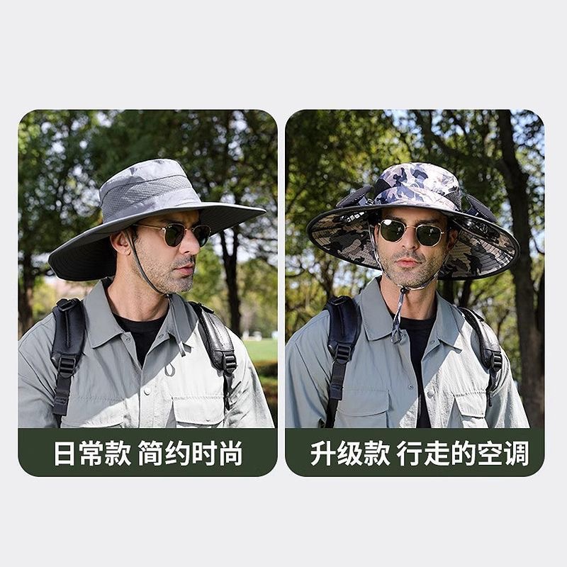 太阳能风扇帽子男士夏季户外登山钓鱼防紫外加大帽檐防晒渔夫帽