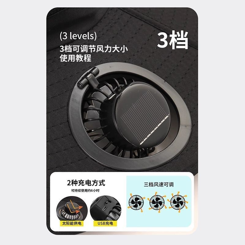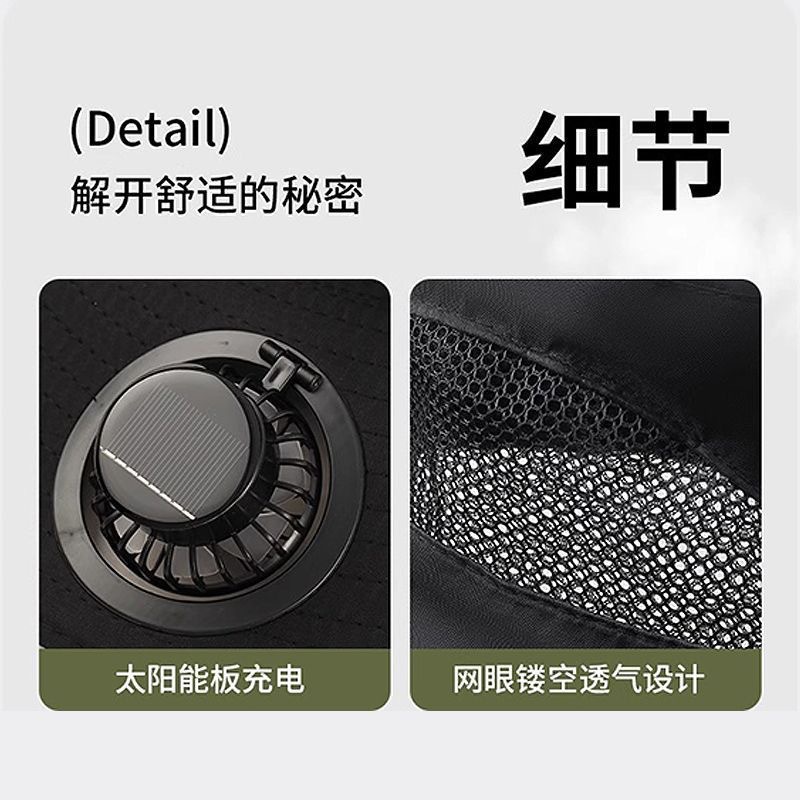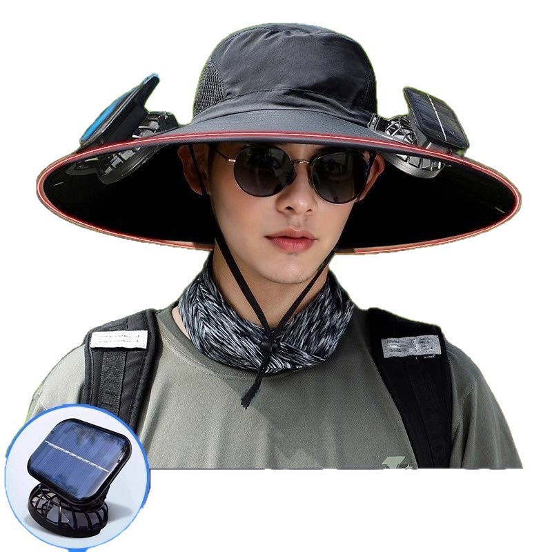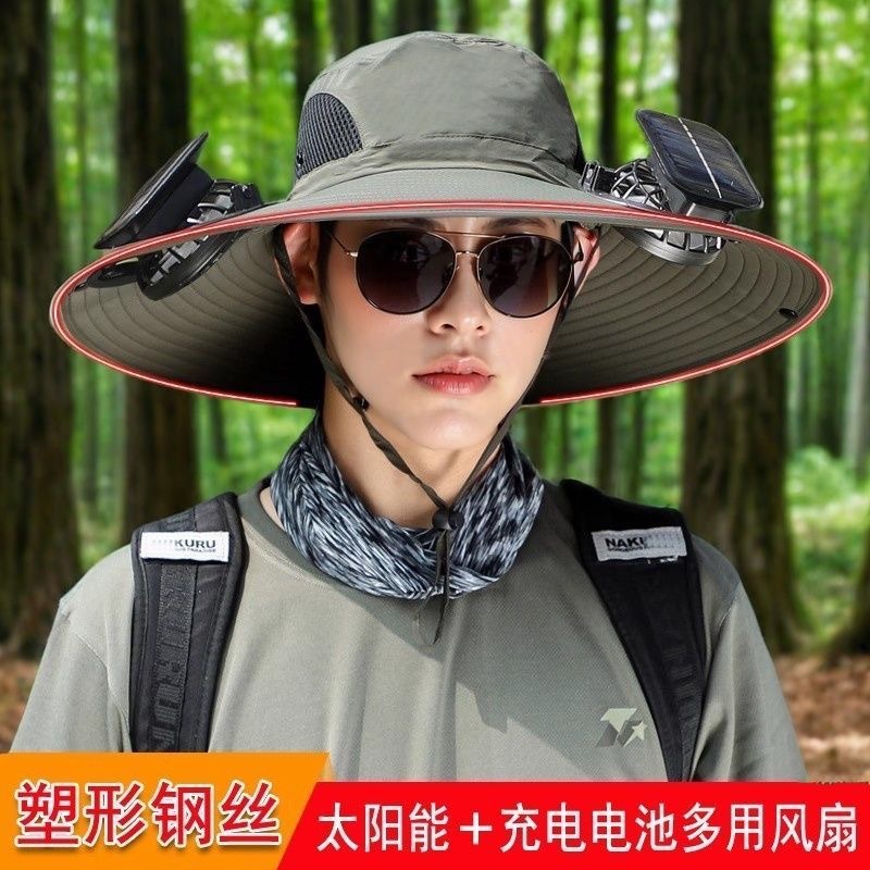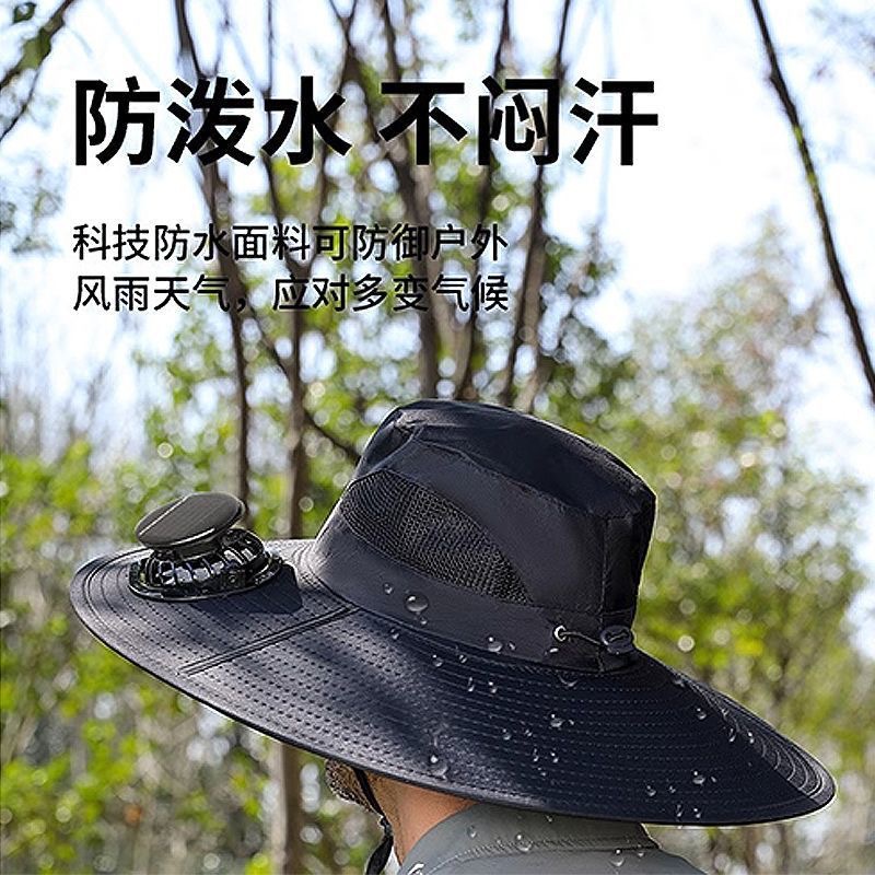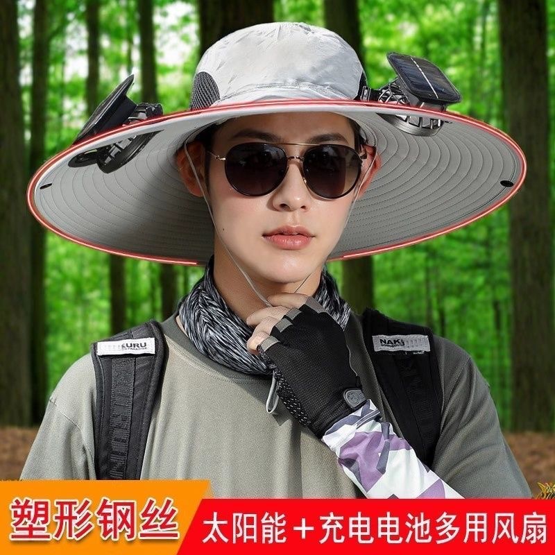 太阳能风扇帽子男士夏季户外登山钓鱼防紫外加大帽檐防晒渔夫帽