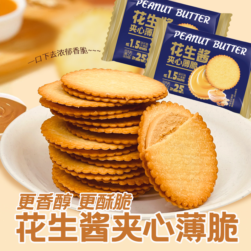 花生酱夹心薄饼干休闲零食小吃整箱盒装