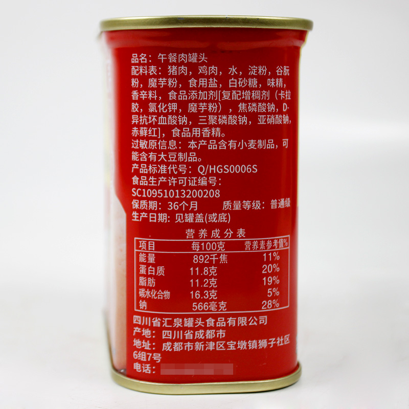午餐肉罐头340g商用罐装午餐肉即食火腿户外烧烤野餐食材