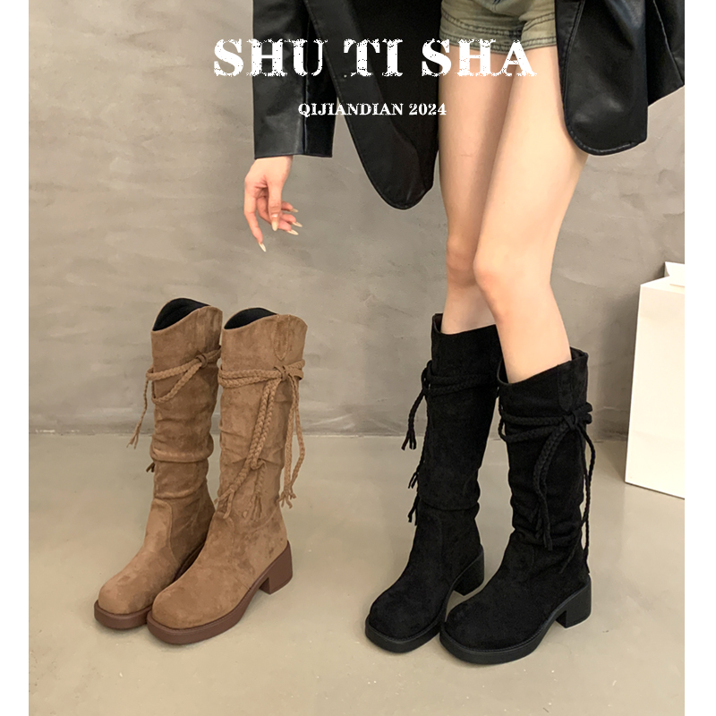 高筒骑士靴女新款秋冬复古英伦显瘦长靴粗跟西部靴