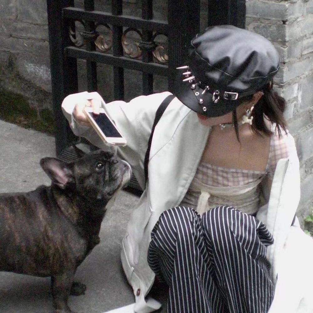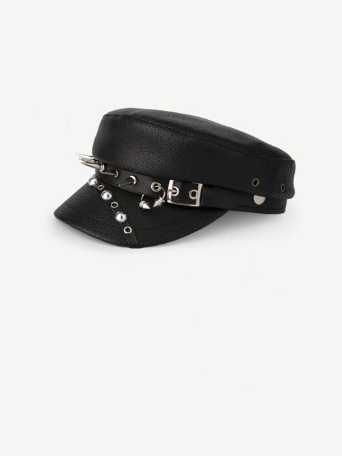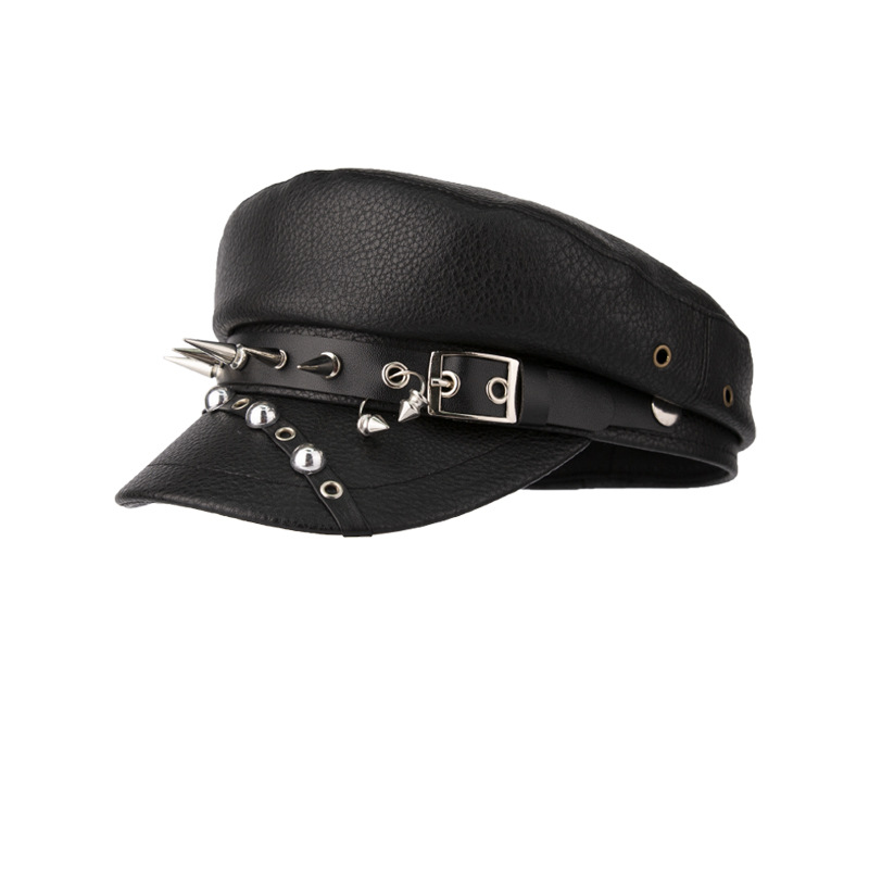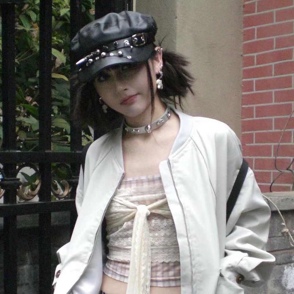 铆钉亚文化Y2k暗黑复古显脸小鸭舌帽时髦皮质海军帽皮扣画家帽女