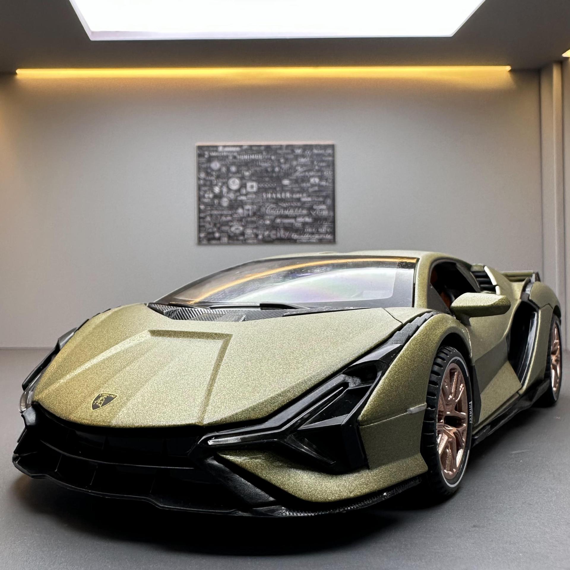 车致合金车模1:24兰博闪电跑车带声光回力玩具车音效模型摆件