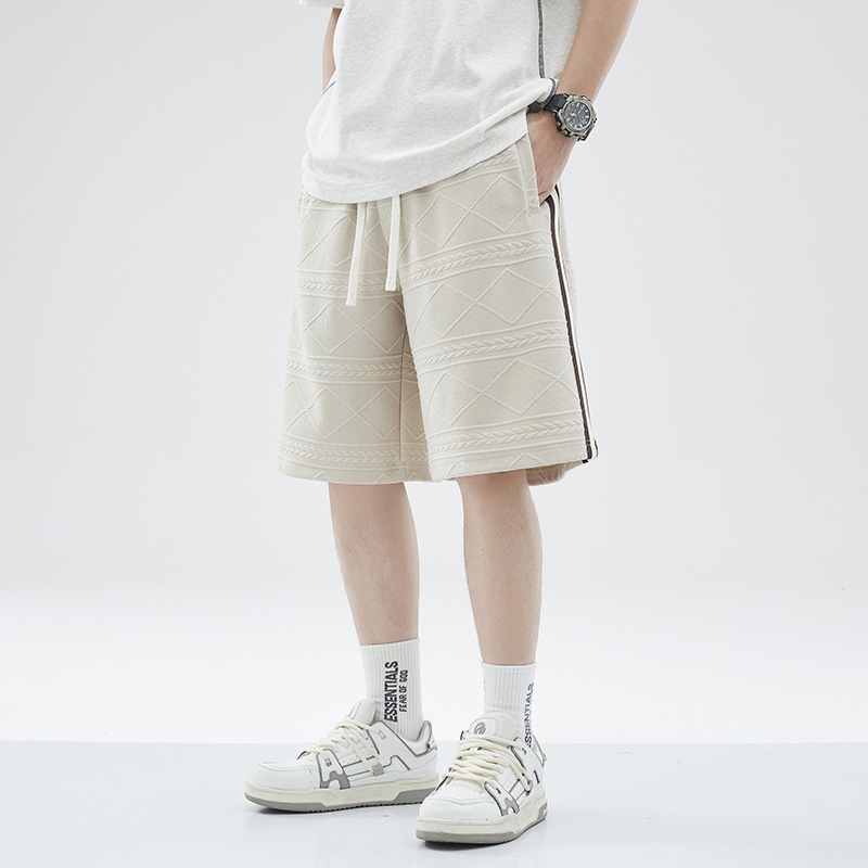 设计感针织提花休闲短裤男士条纹拼接运动中裤夏季宽松直筒五分裤