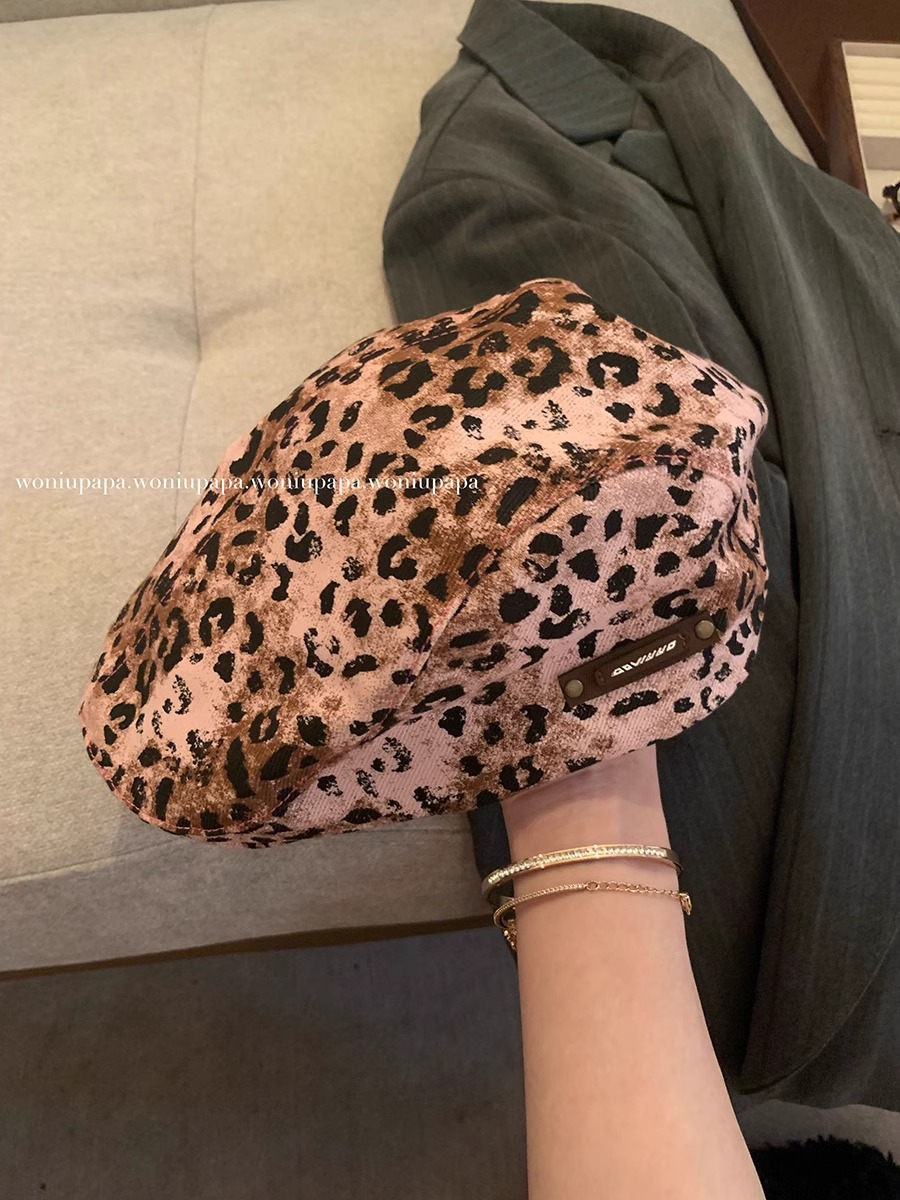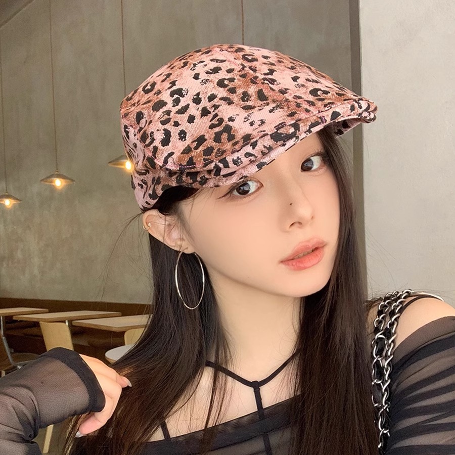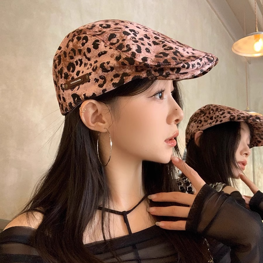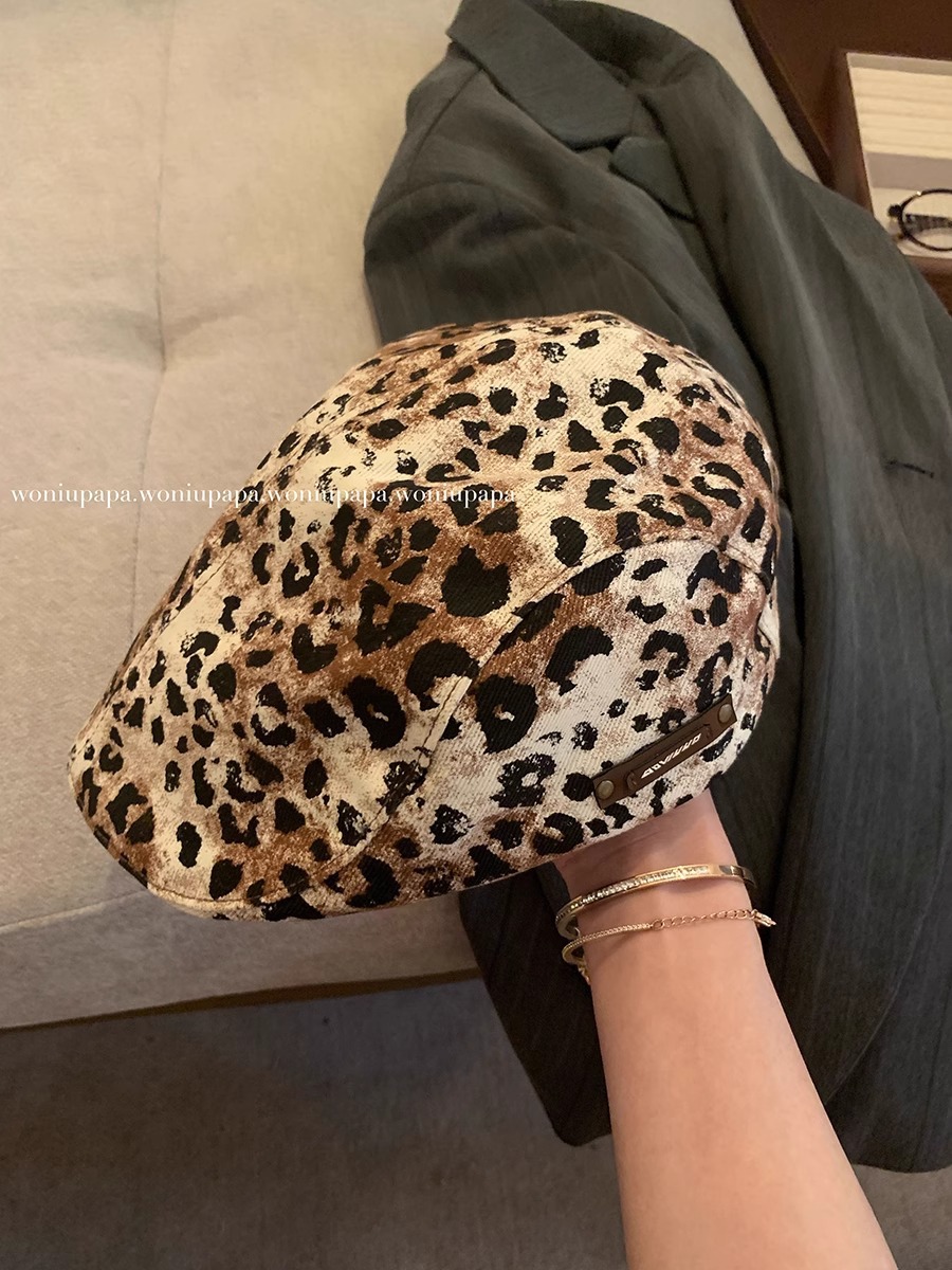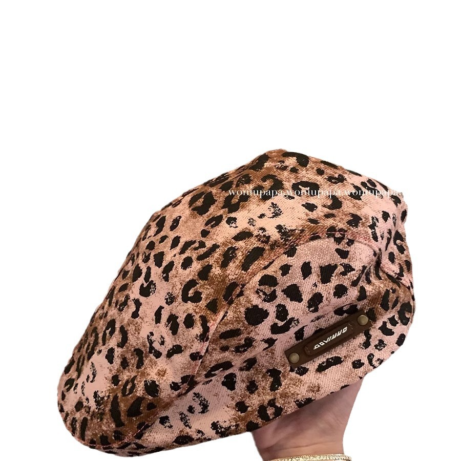亚文化美式复古豹纹前进帽女春夏薄款大头围显脸小时髦文艺报童帽