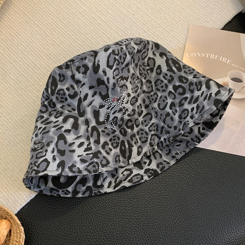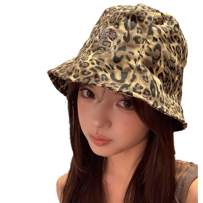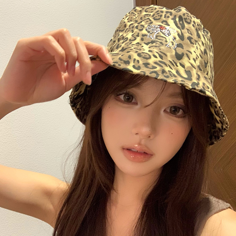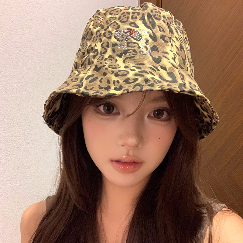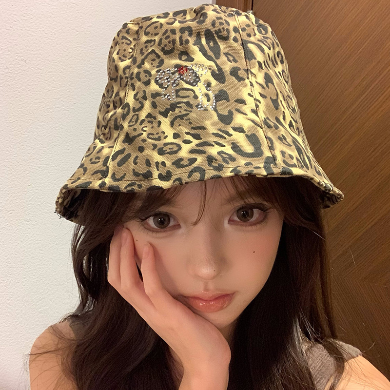 日系复古蝴蝶结豹纹渔夫帽女春秋百搭大头围水桶帽韩版显脸小帽子