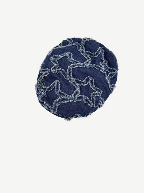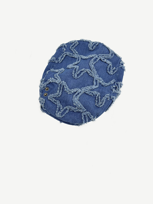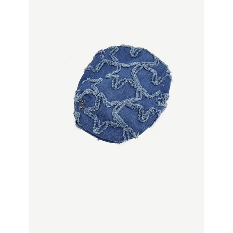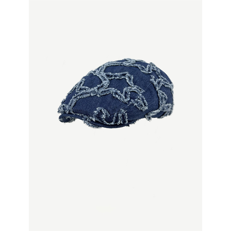 毛边星星牛仔前进帽反戴贝雷帽女夏水洗做旧报童帽百搭大头围帽子