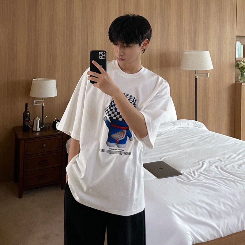MYQ机器猫短袖T恤男夏季宽松休闲纯棉短T韩版潮流圆领半袖上衣