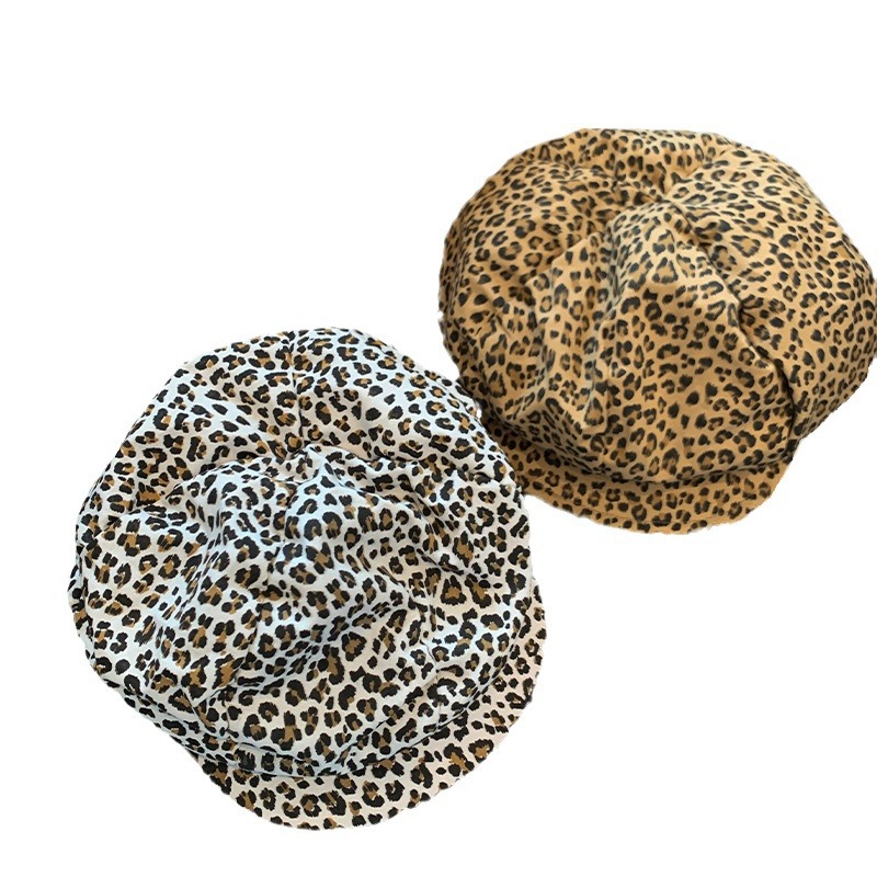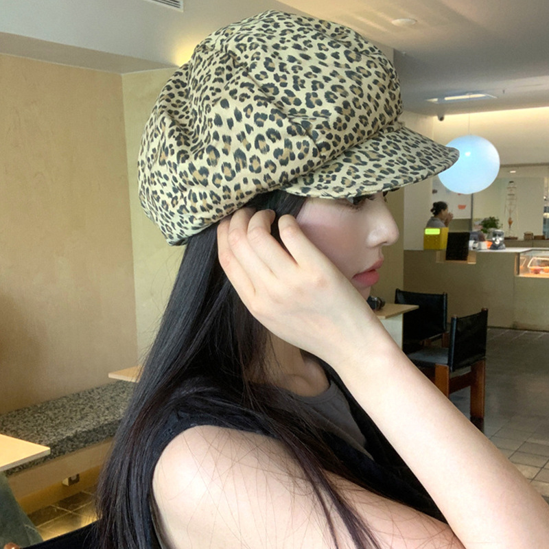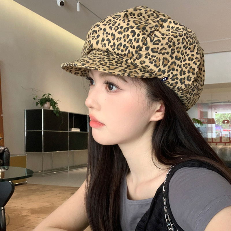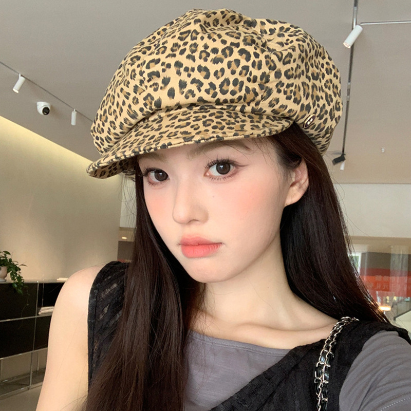 美式复古豹纹贝雷帽女夏季大头围显脸小云朵八角帽Y2K辣妹帽子潮