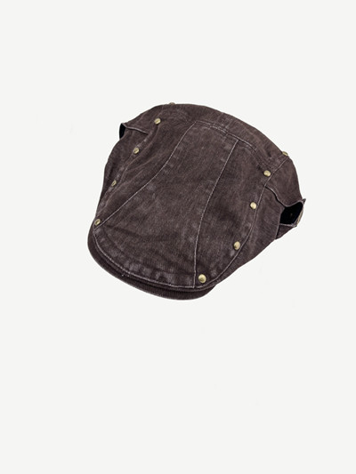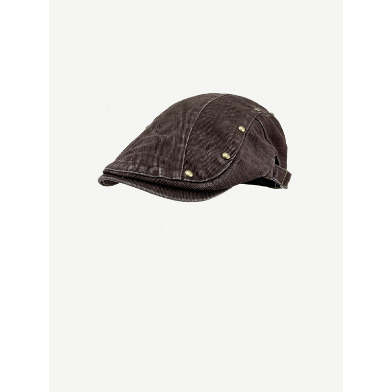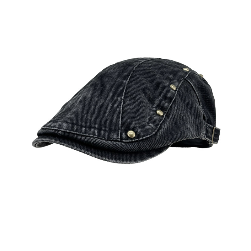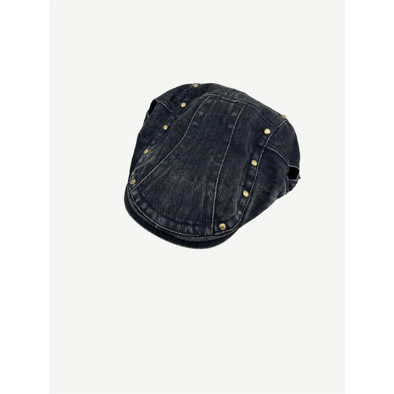 大头围复古铆钉前进帽女百搭日系水洗牛仔贝雷帽显脸小画家帽子潮