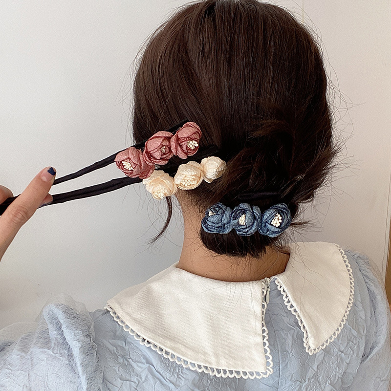 仙女花朵盘发器气质甜甜圈丸子头可爱造型简约懒人花苞头森系发饰