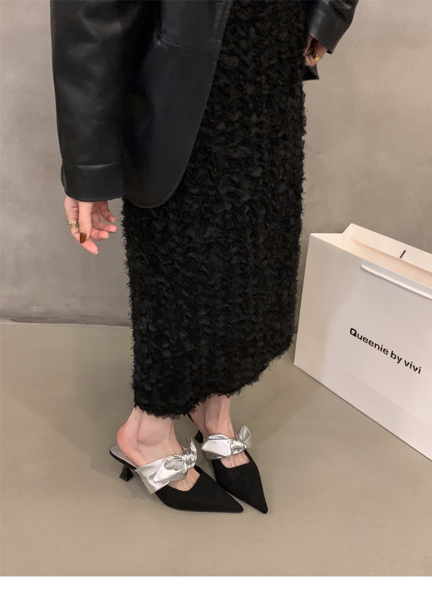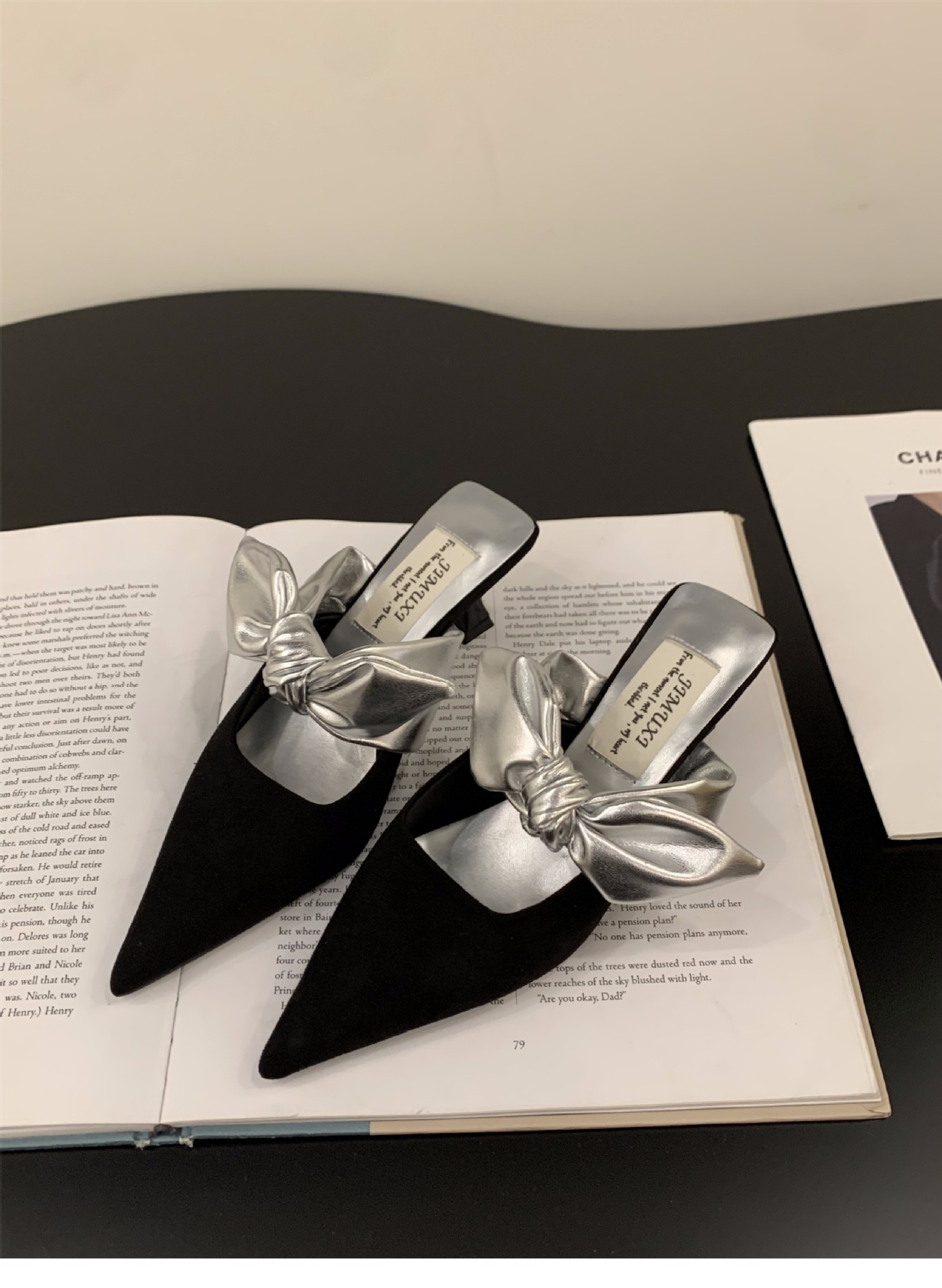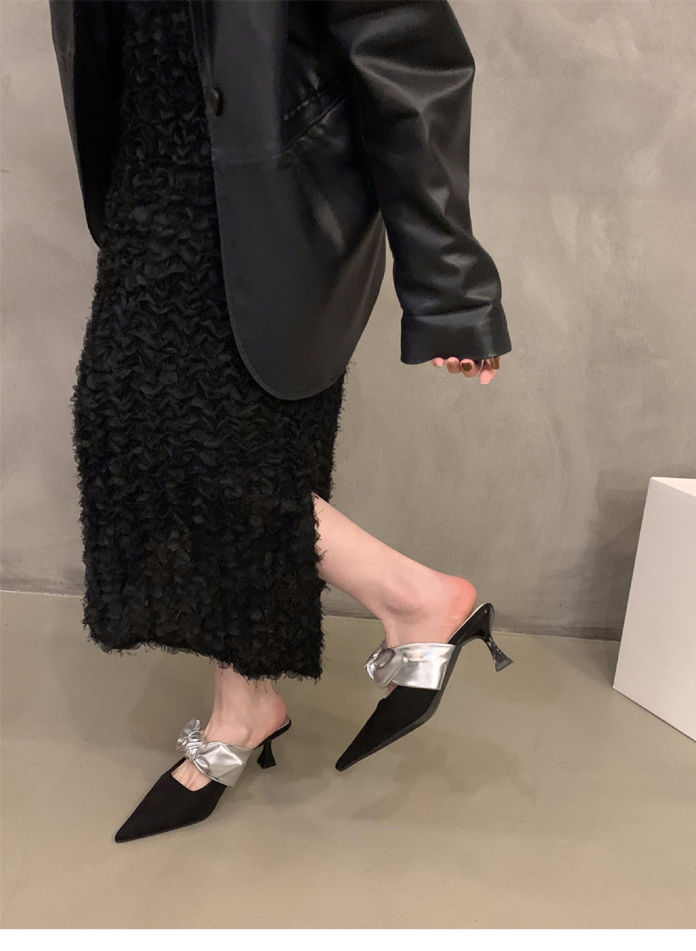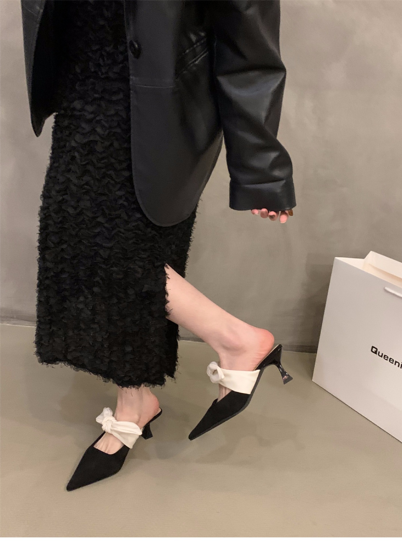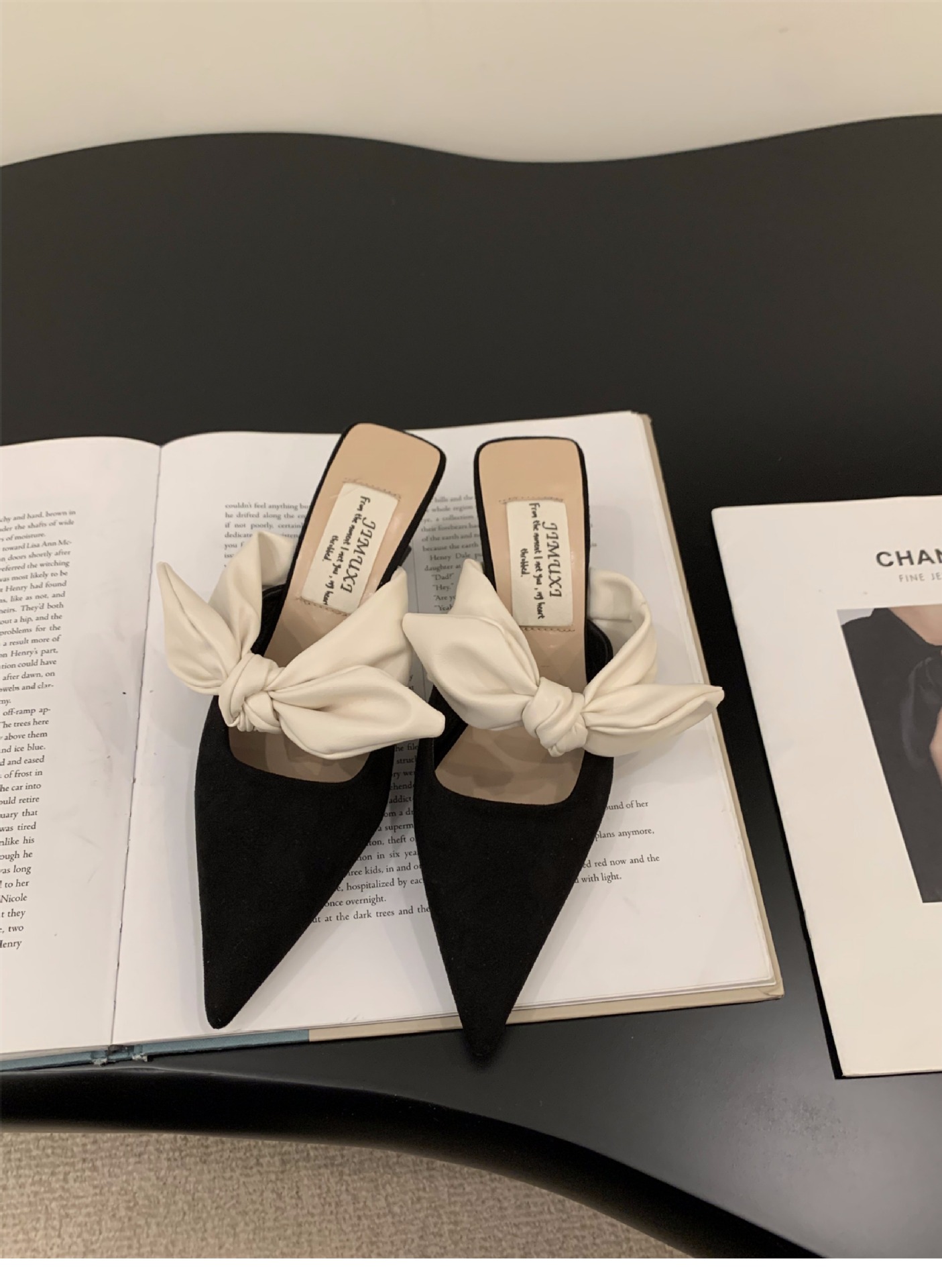 法式小香风包头半拖鞋仙女鞋子外穿新款春夏季蝴蝶结高跟凉拖