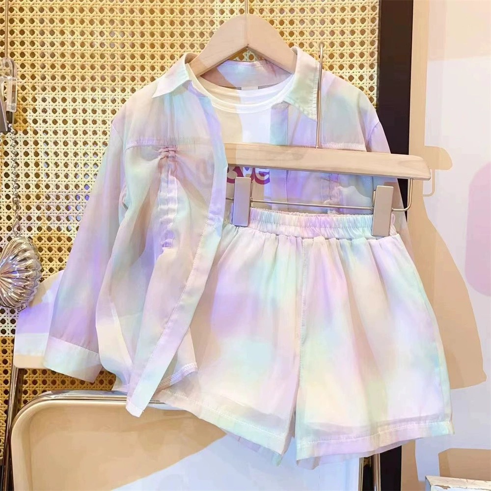 2025韩版女童超仙防晒套装夏季新款开衫透气衬衫上衣短裤三件套潮