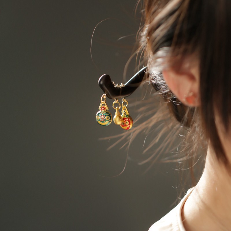 吞金兽吊坠简约发簪木质丸子头夏季盘发簪子发饰古典旗袍女式配饰
