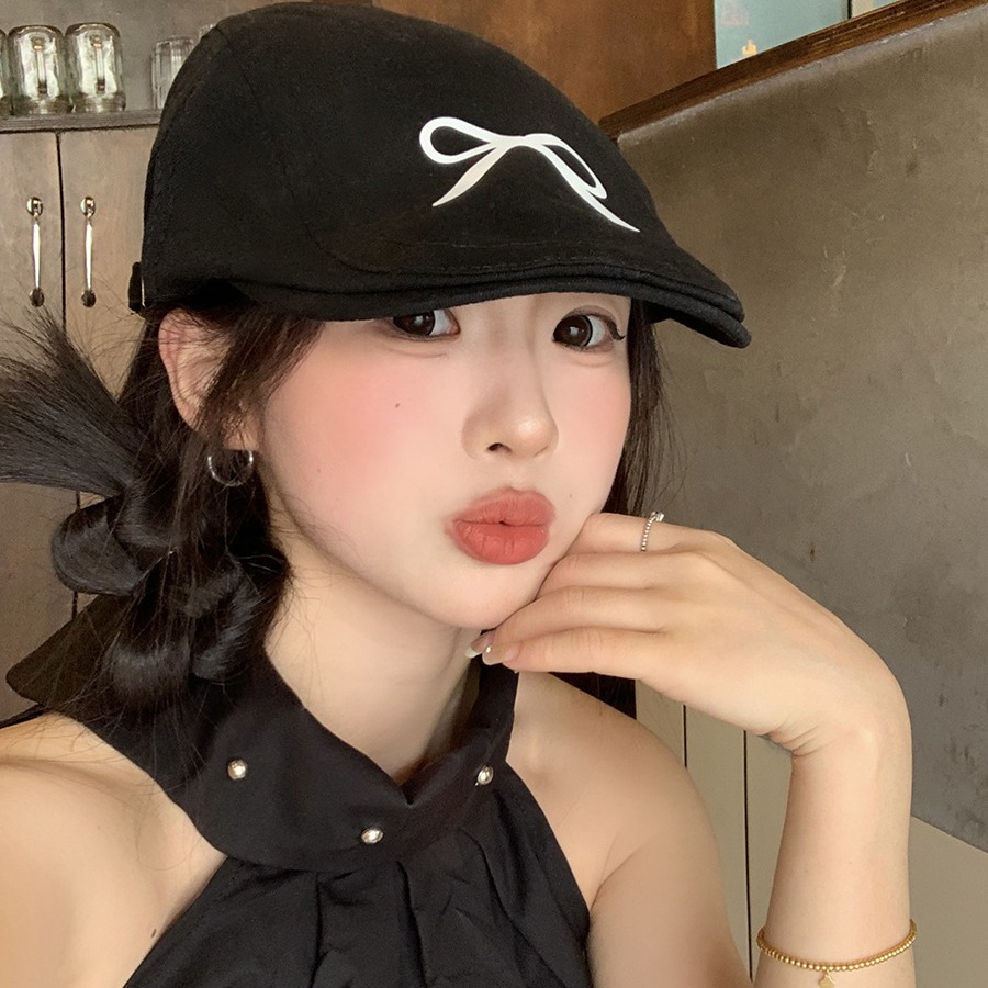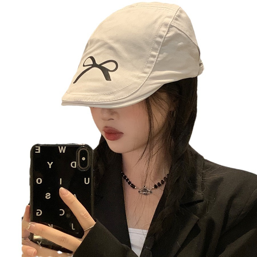 美式y2k复古蝴蝶结刺绣前进帽女新款春夏薄款百搭鸭舌贝雷帽