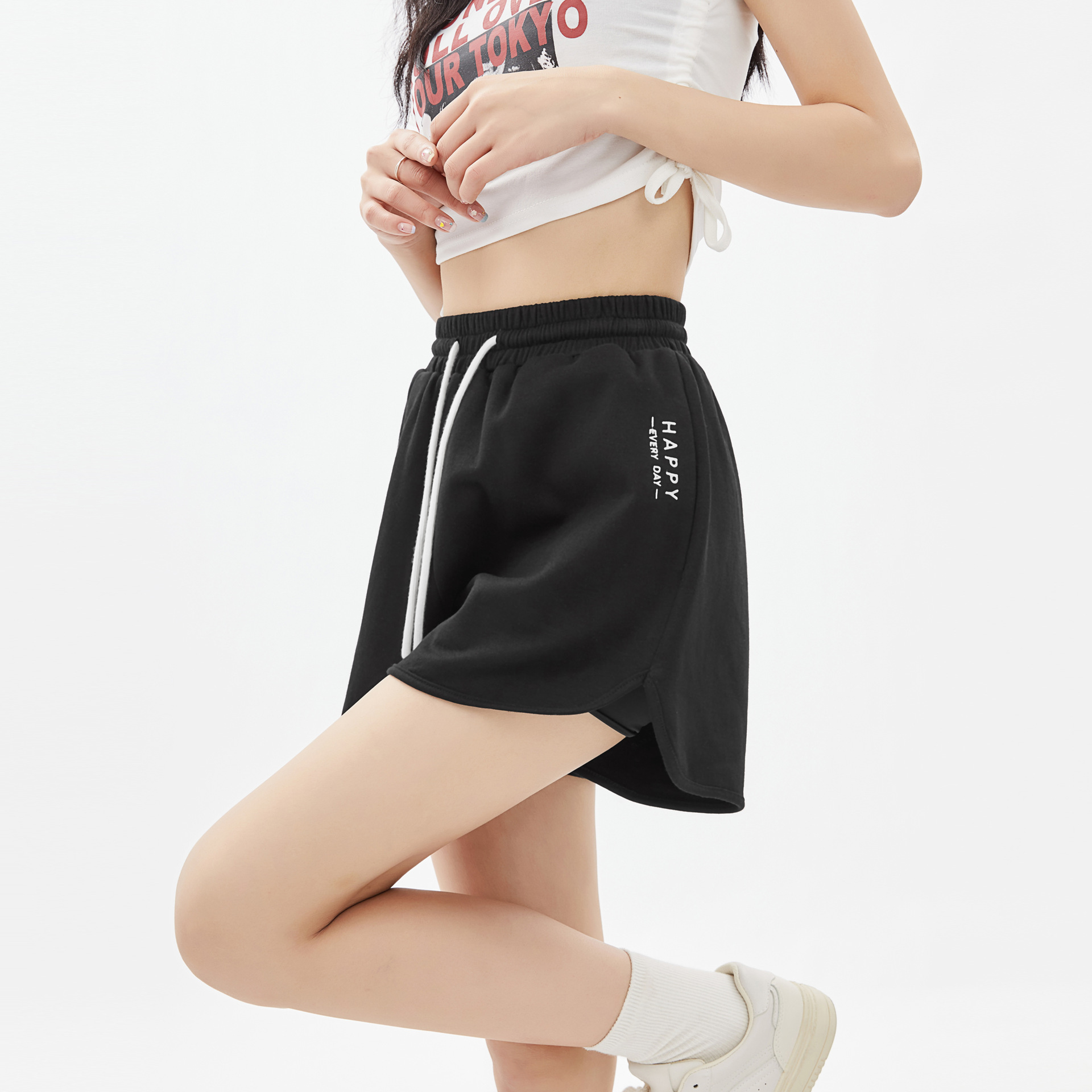 黑色运动裤女夏新款小个子宽松阔腿高腰a字显瘦休闲短裤外穿