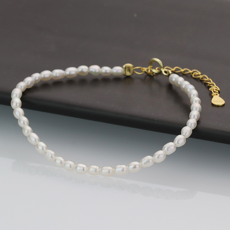 S925纯银极细合成珍珠百搭手链女淡水小米粒轻奢感超细小珠手饰