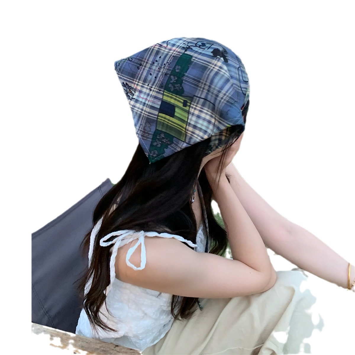 春夏季度假拍照漫画涂鸦复古三角巾韩国新款凹造型头巾辣妹发带女